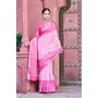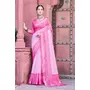 Pink Color Linen Cotton Fabric Designer Printed Ethnic Festive Saree