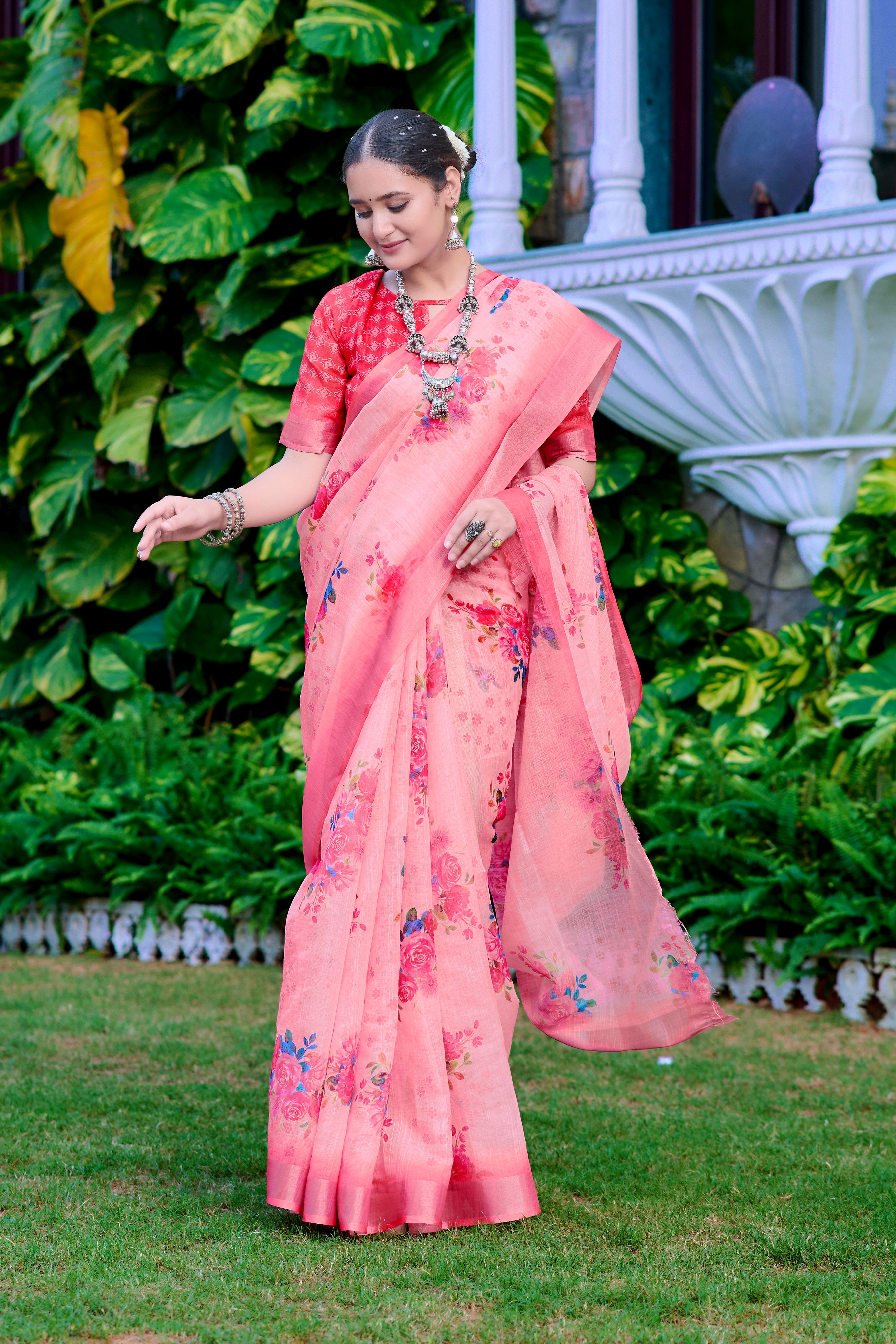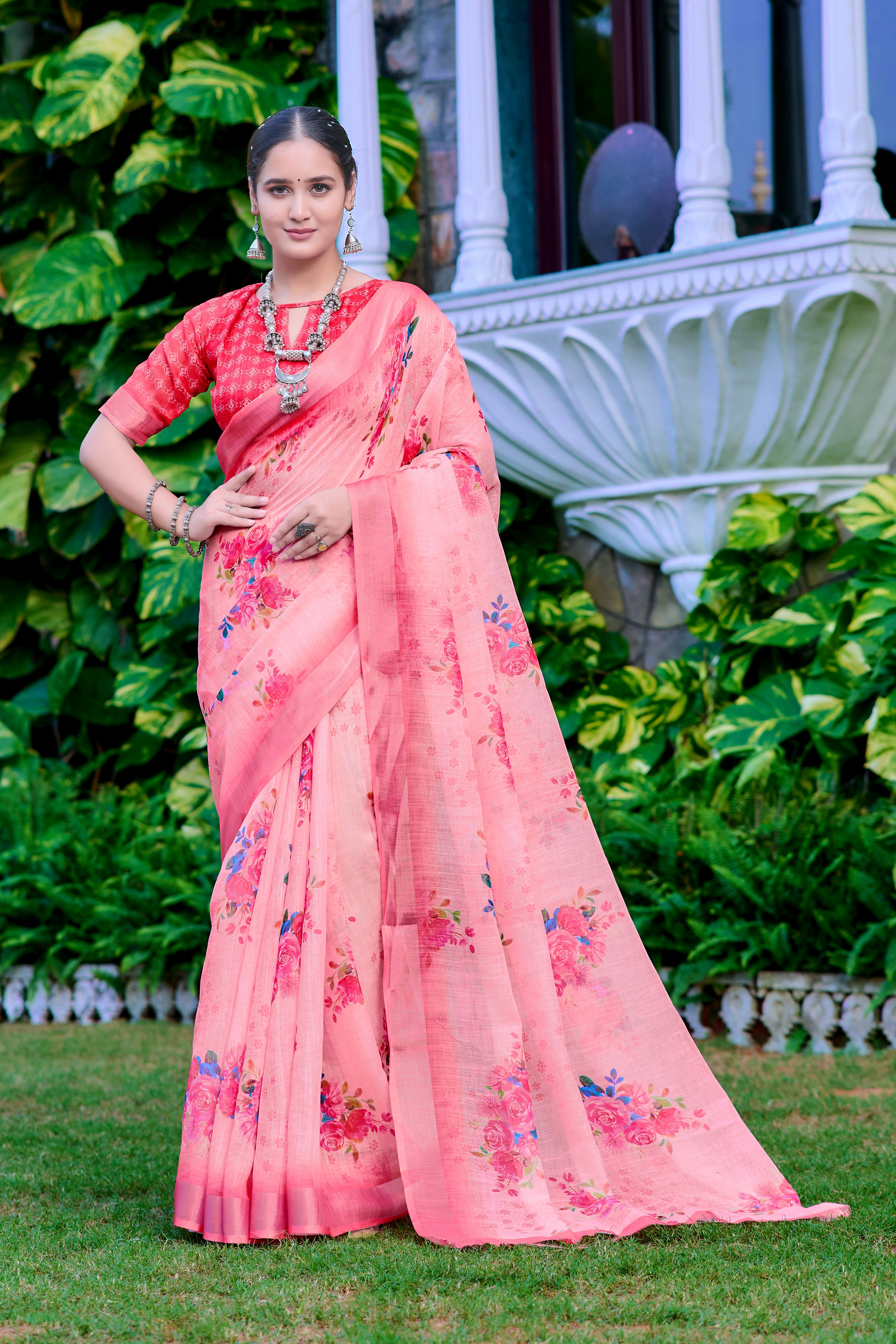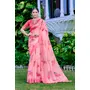 Pink Color Linen Cotton Fabric Designer Printed Ethnic Festive Saree