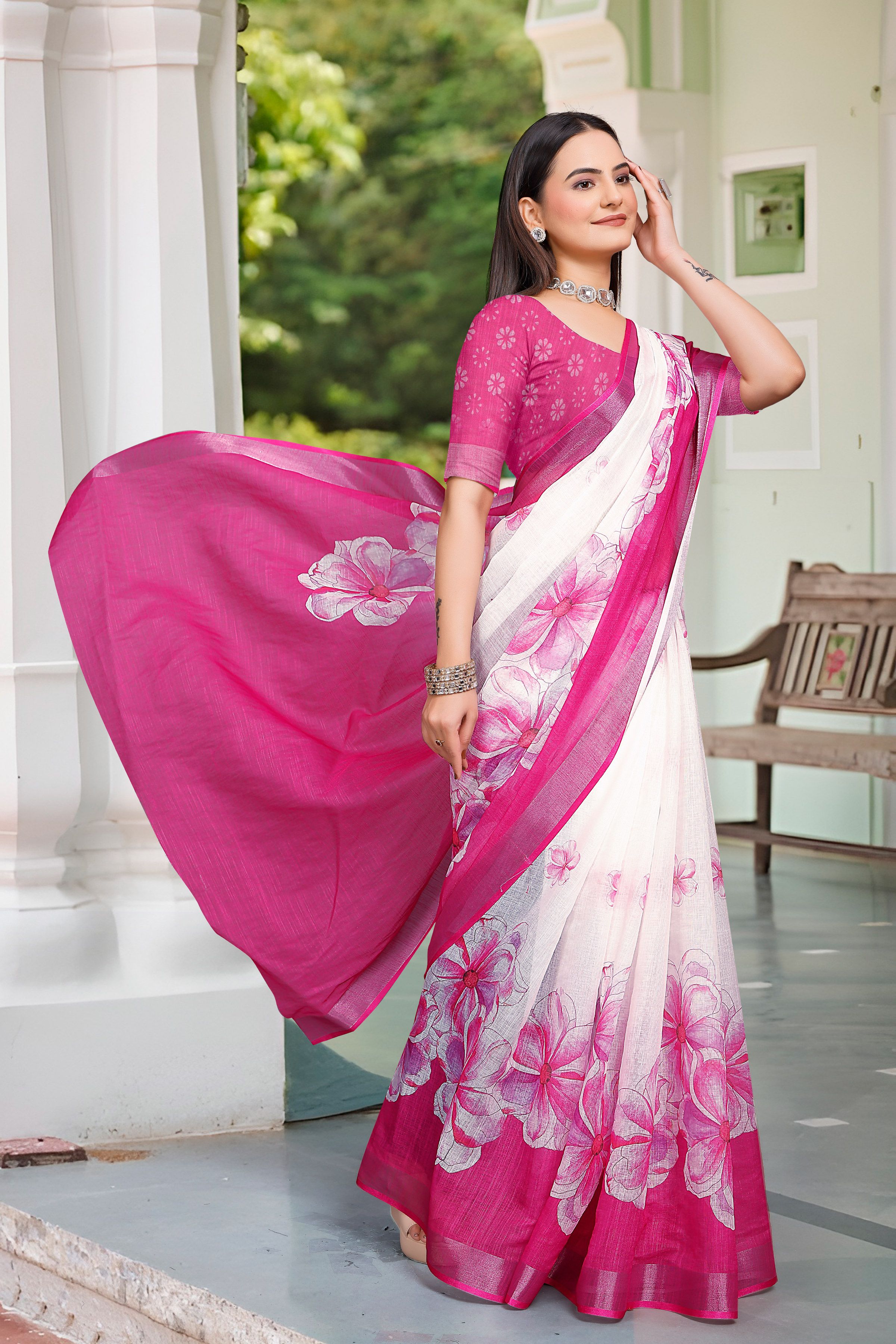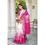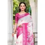 Pink Color Linen Cotton Fabric Woven Border Designer Printed Saree