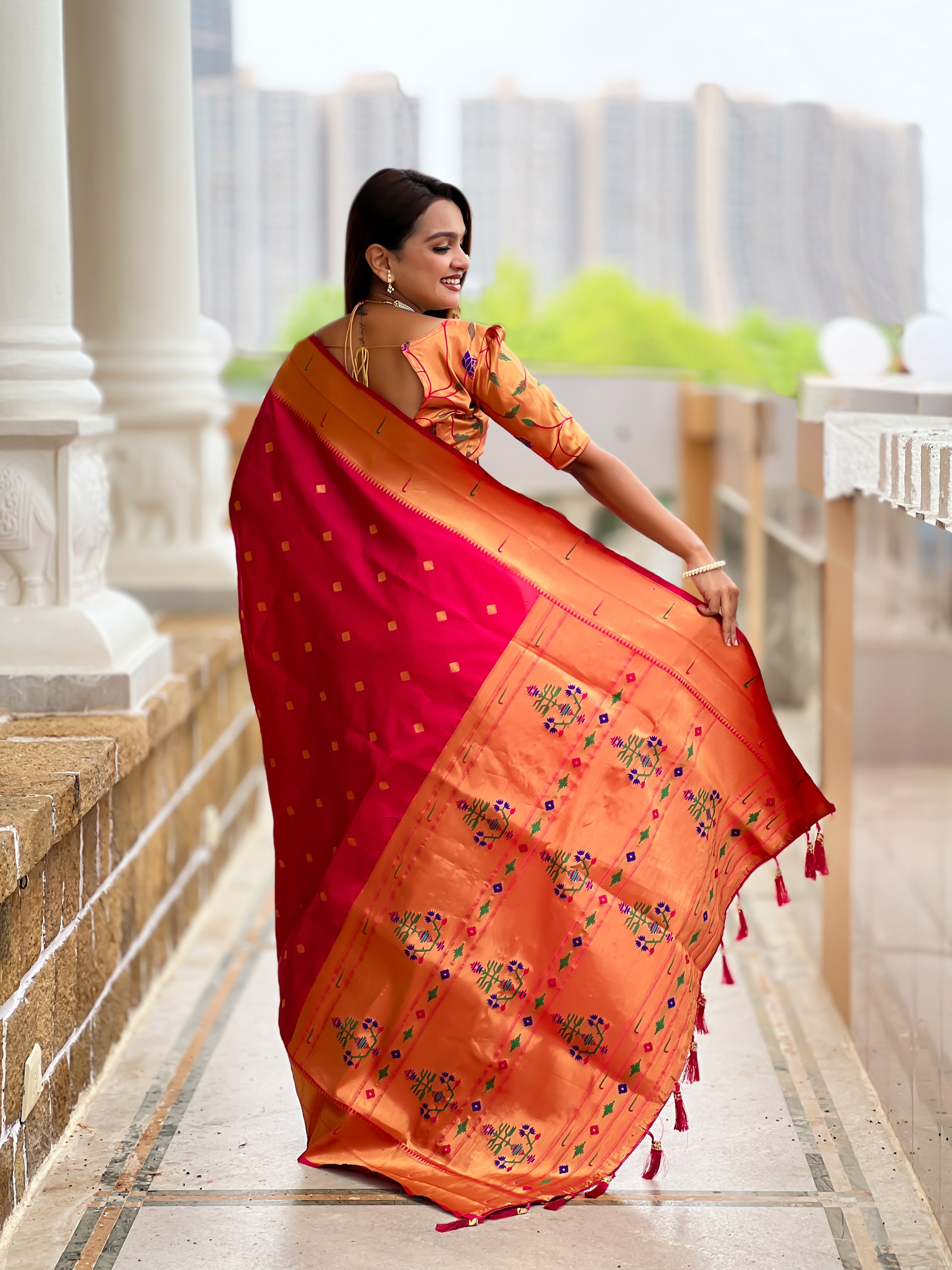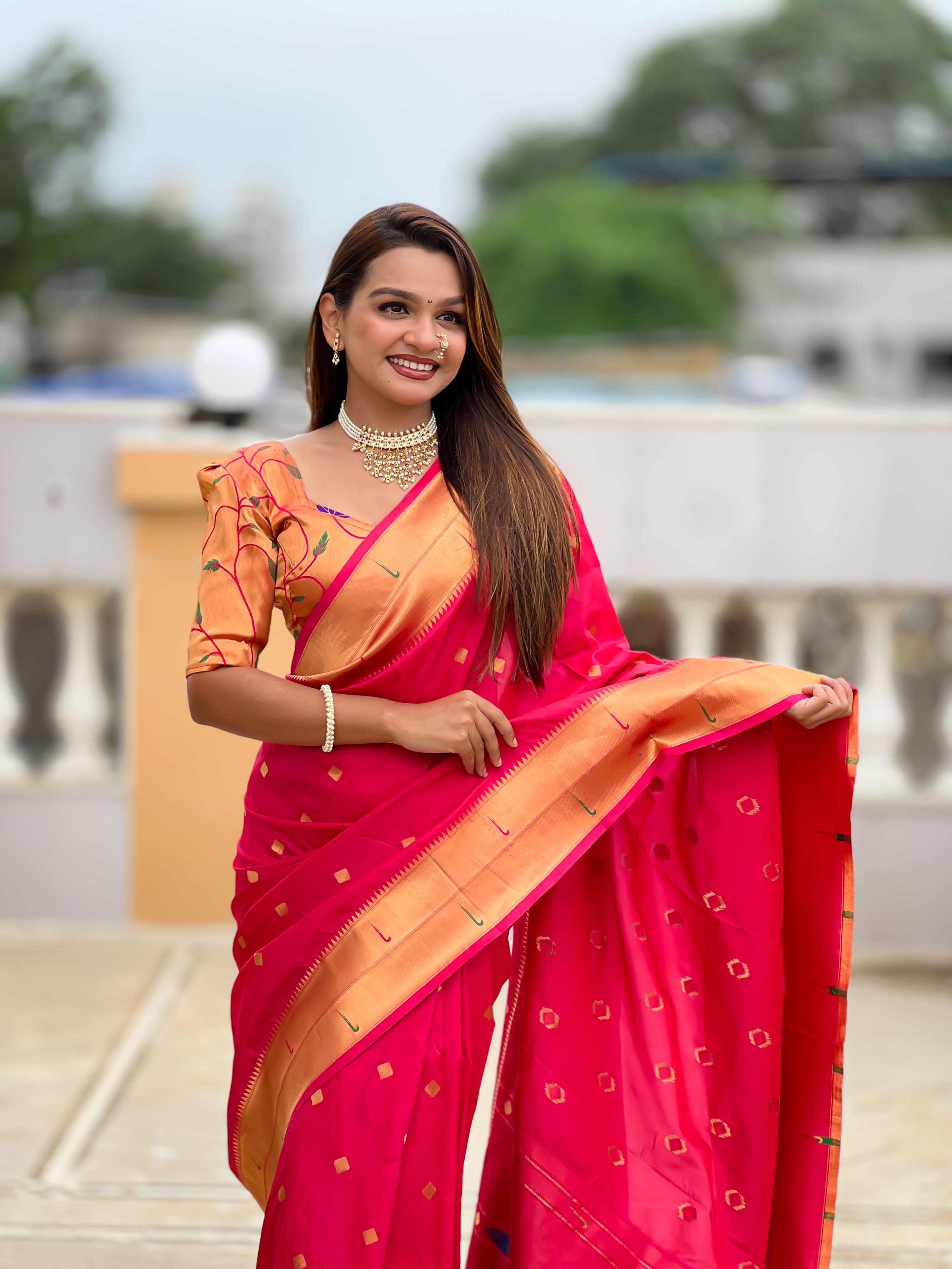 Pink Color Paithani Silk Woven Jacquard Jari Designer Ethnic Saree