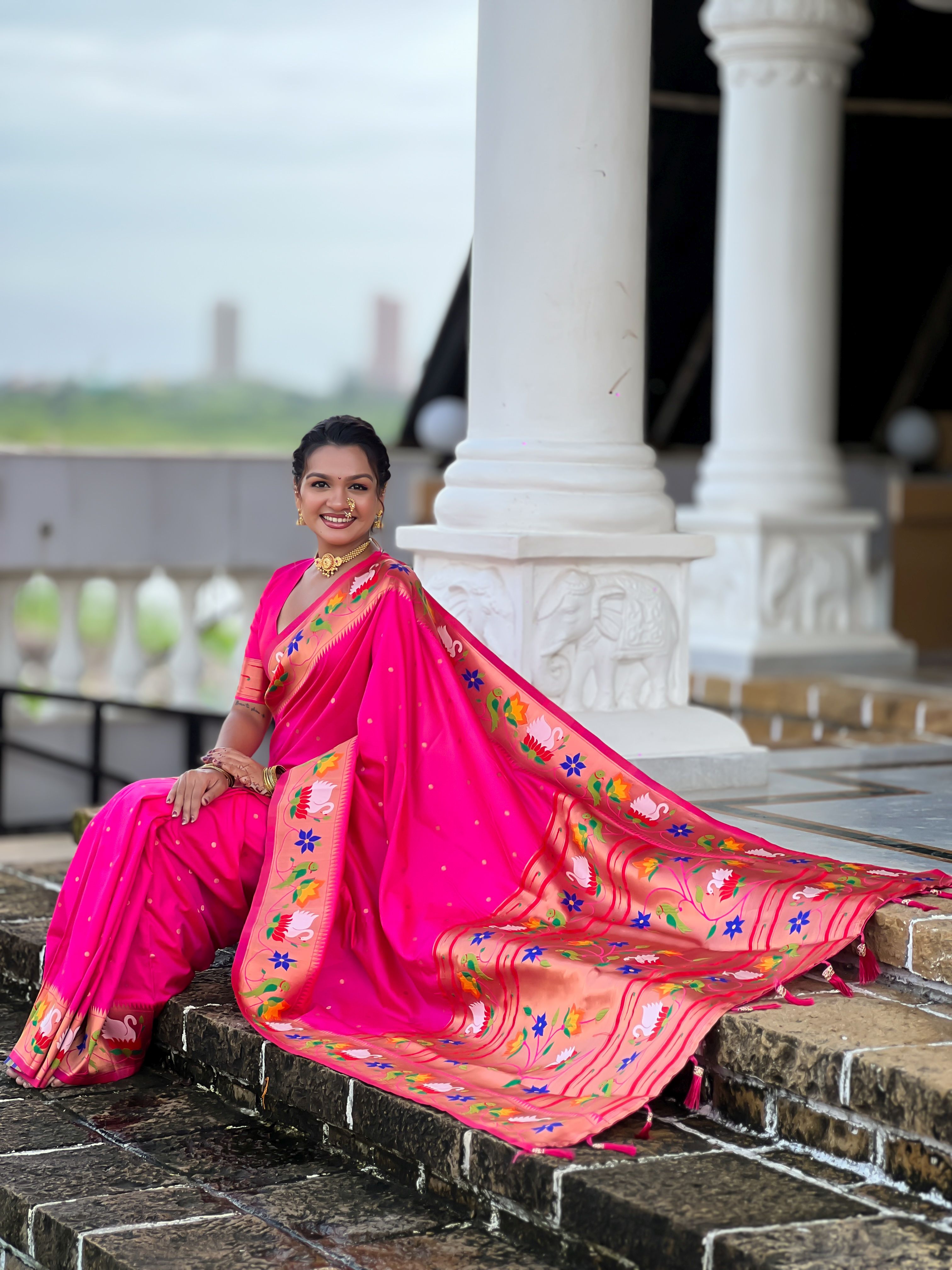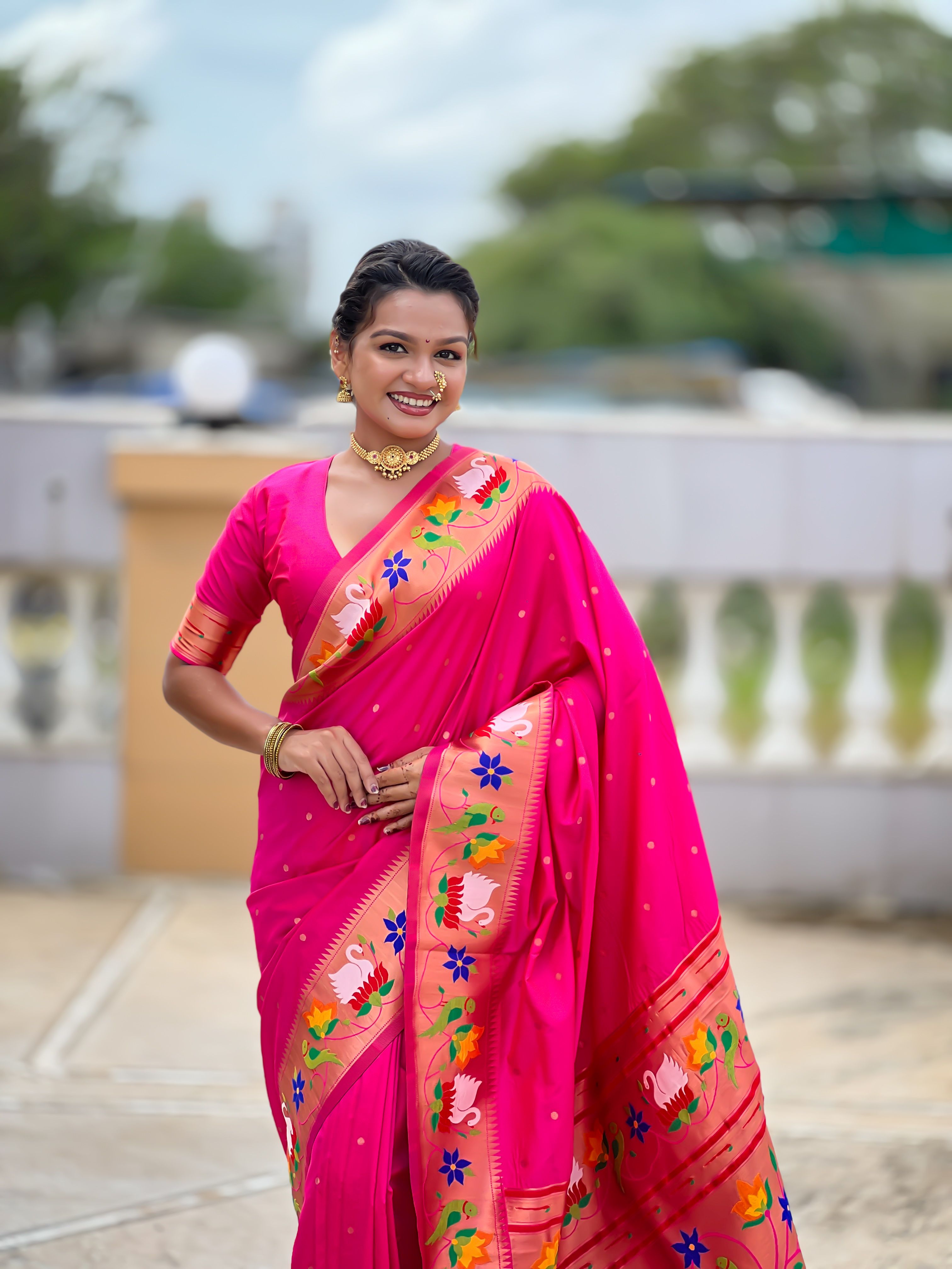 Pink Color Paithani Silk Woven Meenakari Jacquard Designer Heavy Wedding Special Saree