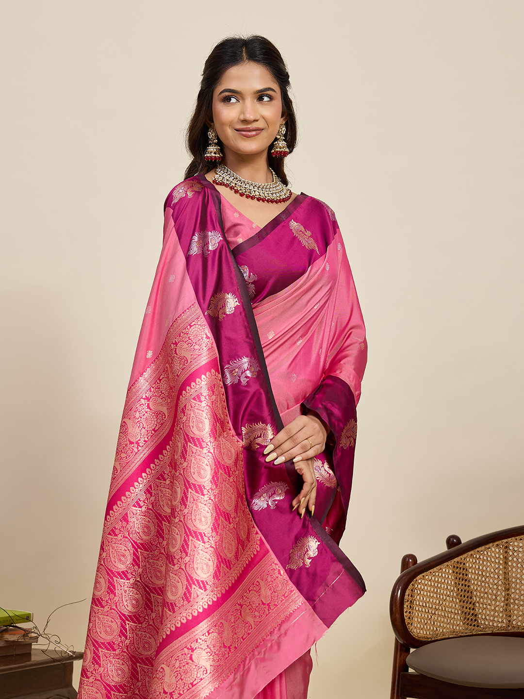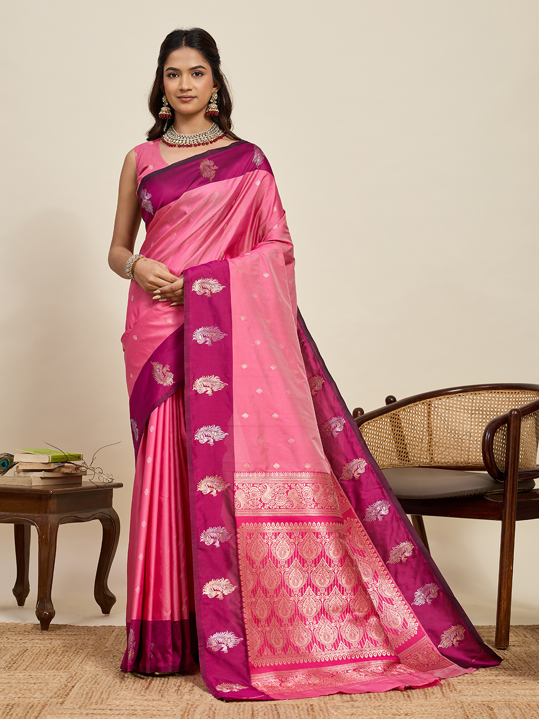 Pink Color Soft Silk Fabric Designer Ethnic Woven Traditional Saree