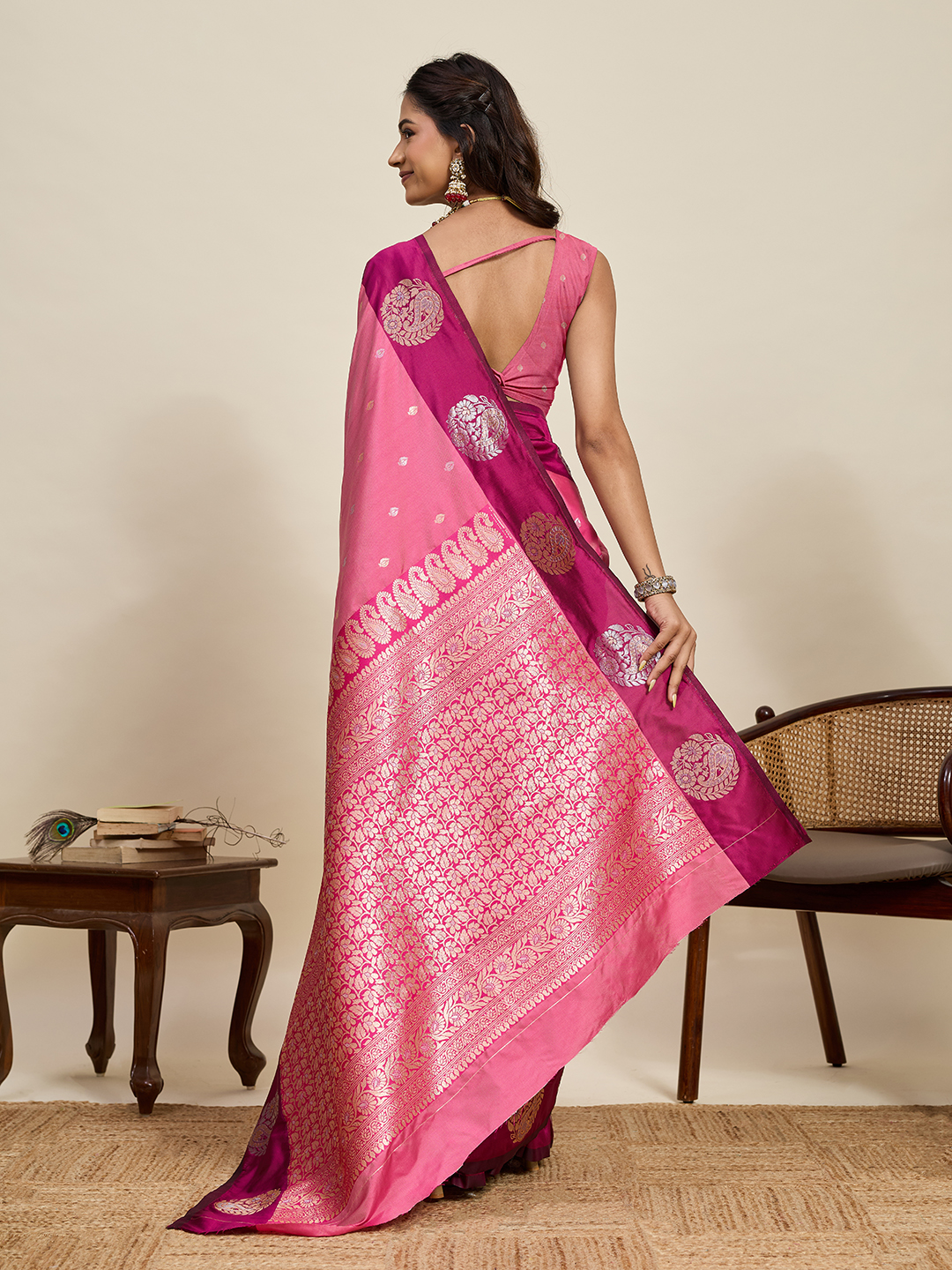 Pink Color Soft Silk Fabric Woven Jari Designer Ceremonial Partywear Saree