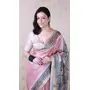 Pink Color Woven Jari Border Designer Madhubani Digital Printed Ethnic Tussar Silk Saree