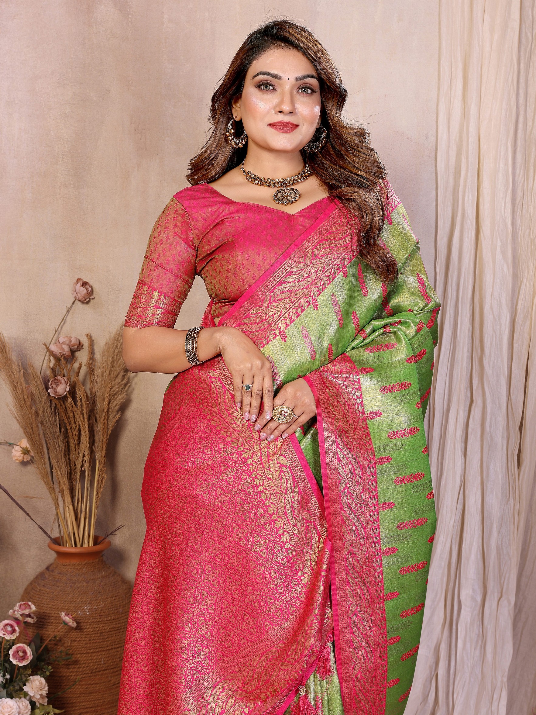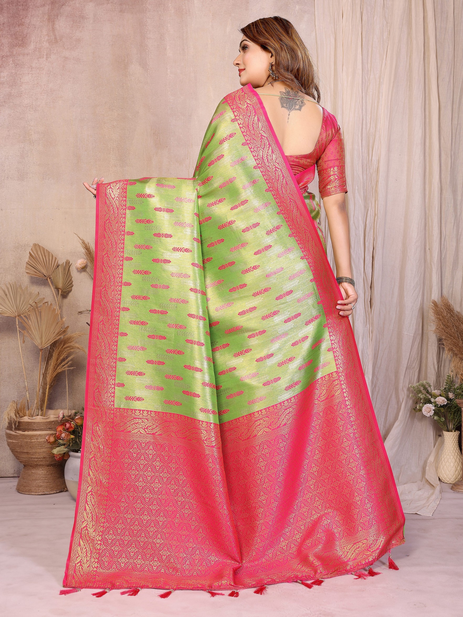 Pista Color Beautiful Banarasi Tissue Silk Rich Sophisticated Saree