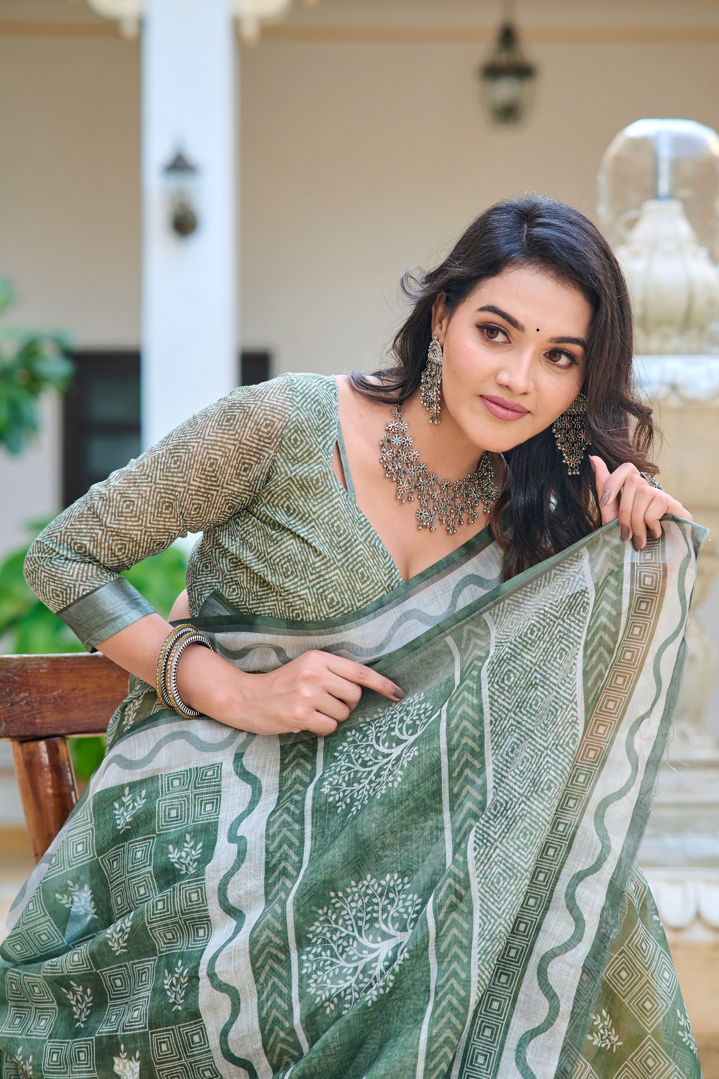 Pista Color Beautiful Linen Cotton Fabric Designer Festive Wear Saree