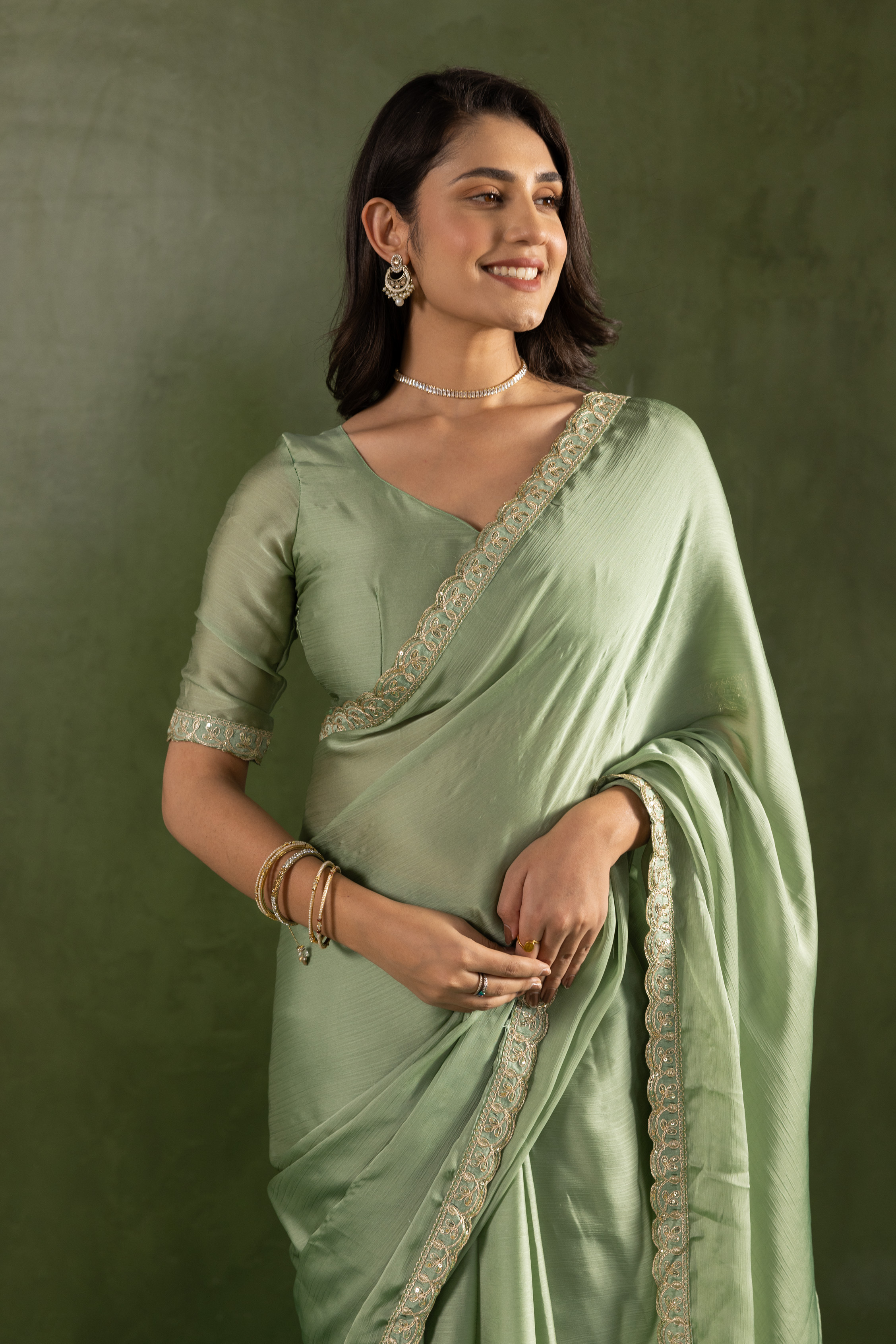 Pista Color Chiffon Fabric Ready To Wear Saree For Graceful Bollywood Style Saree