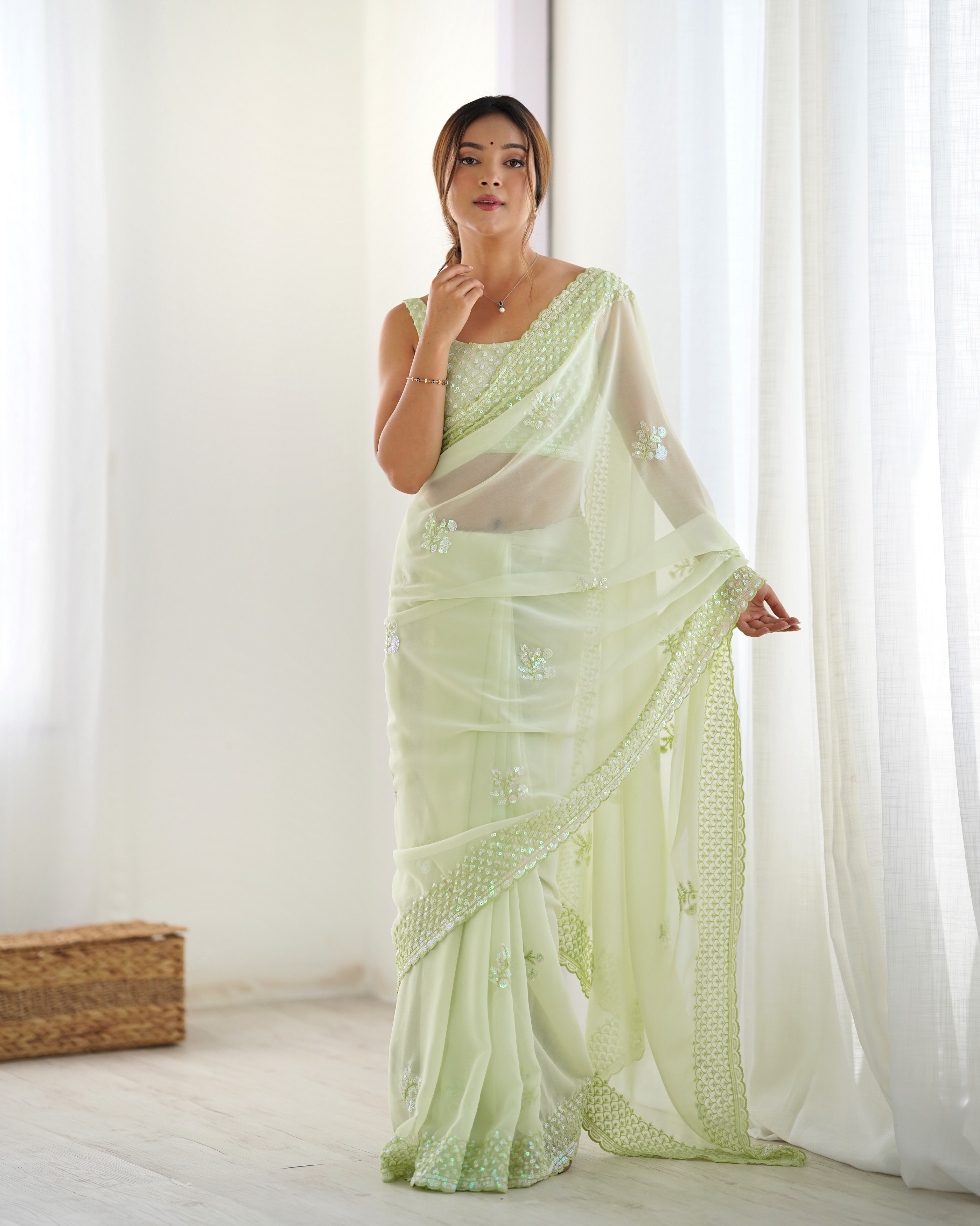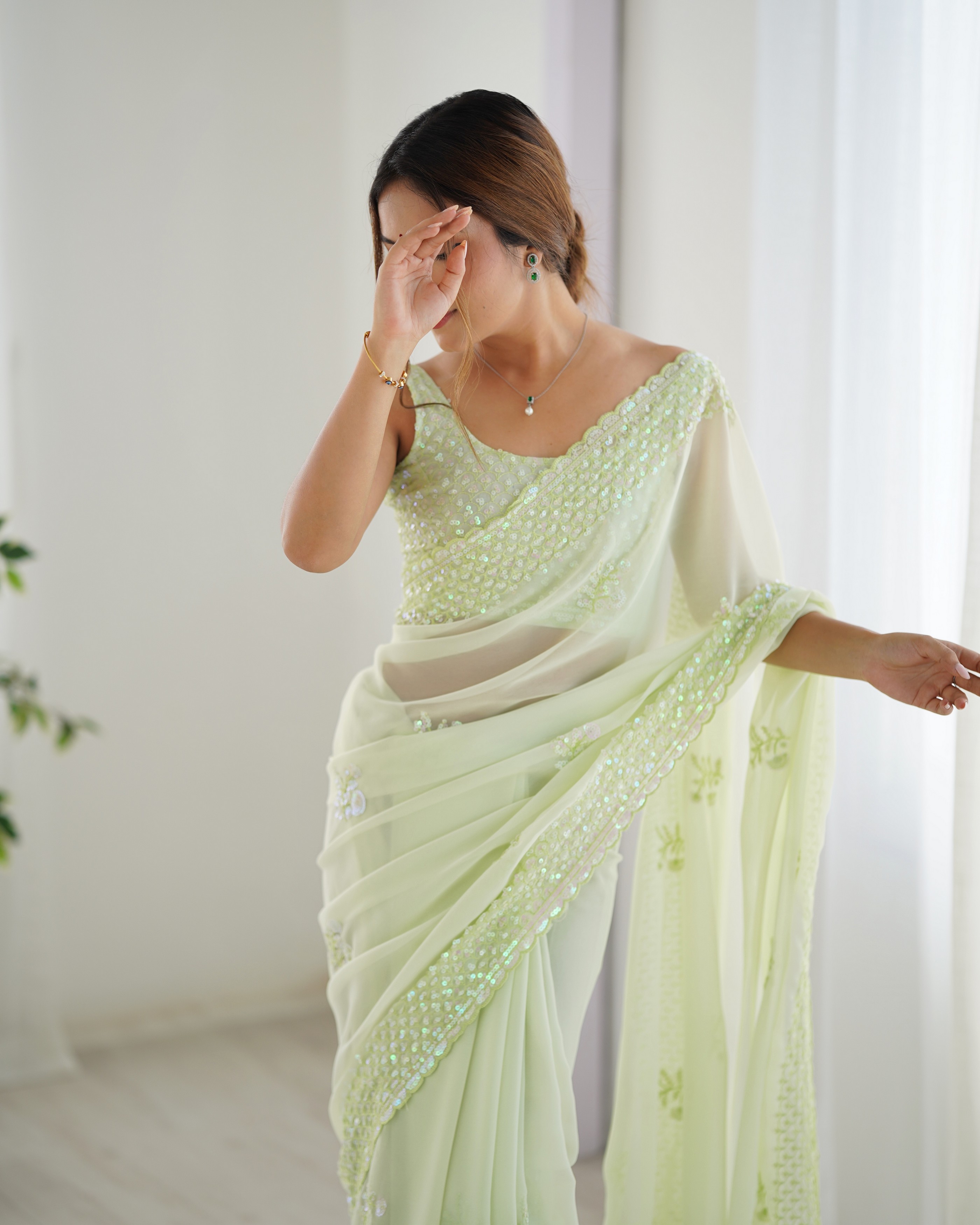 Pista Color Smart And Sparkling Bollywood Party Style Sequins Work Saree