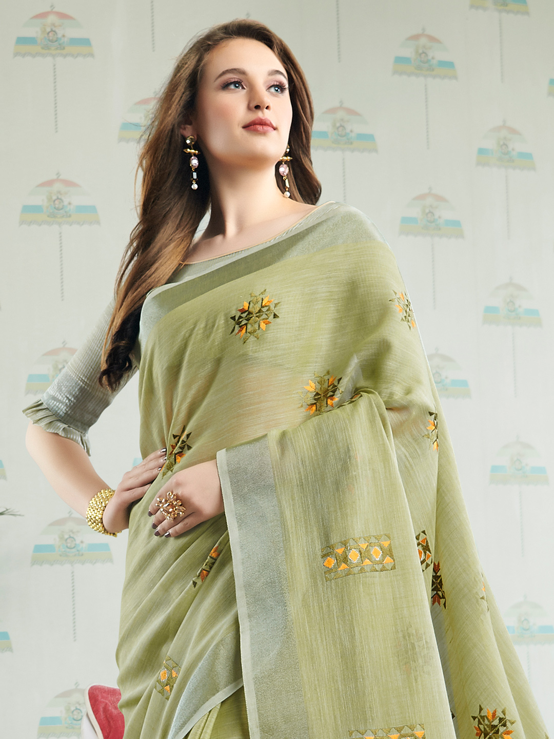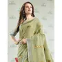 Pista Green Color Linen Fabric Sophisticated Floral Embroidered Saree