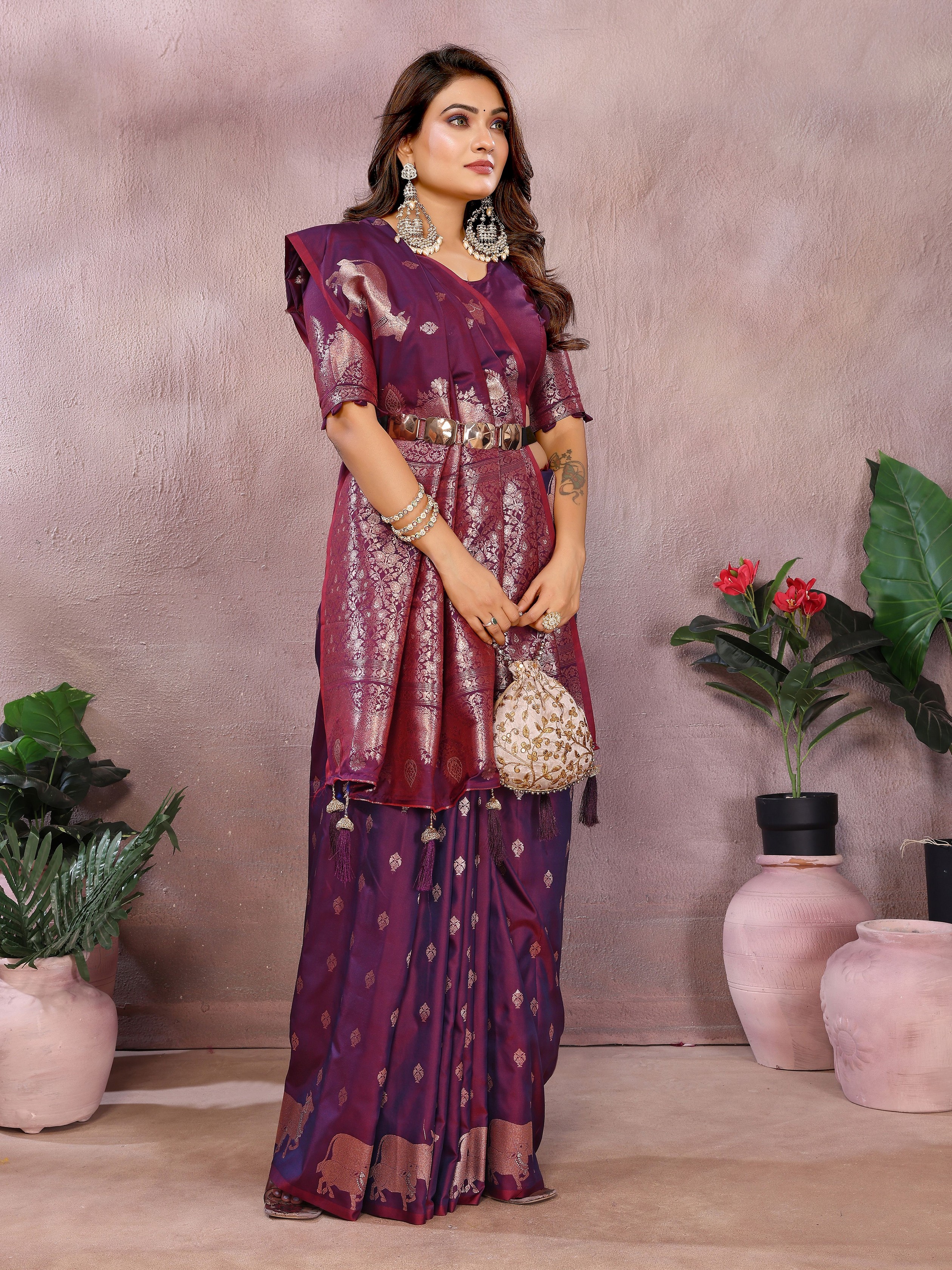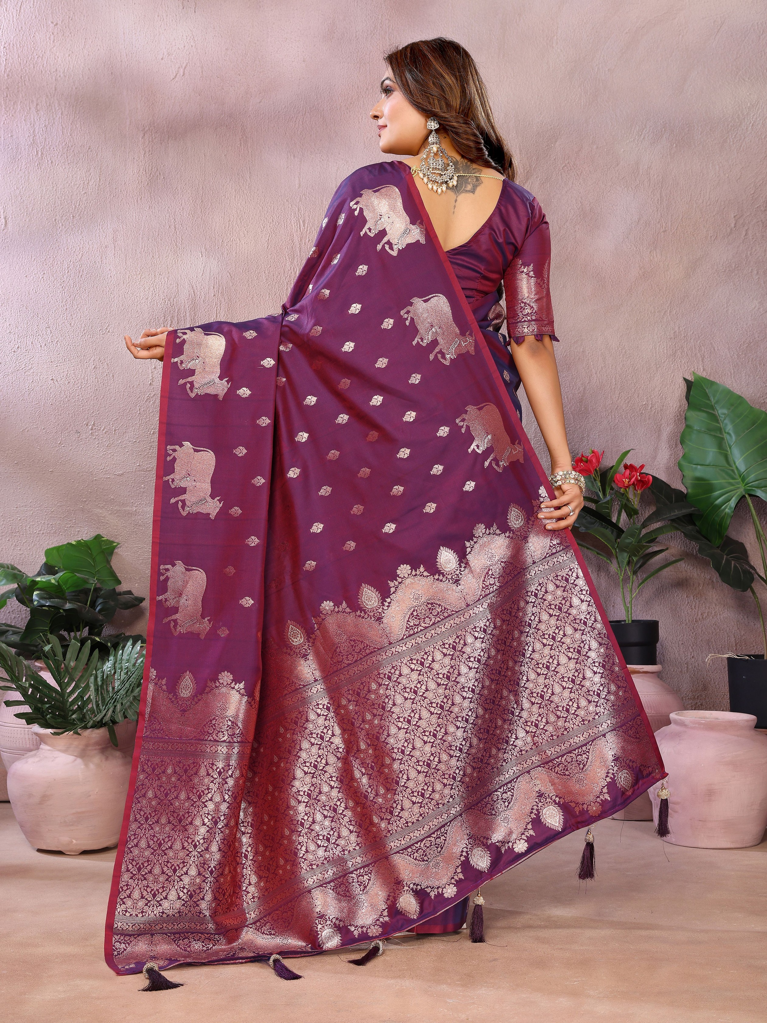 Purple Color Banarasi Silk fabric Jacquard Weaving Designer Ceremonial Saree