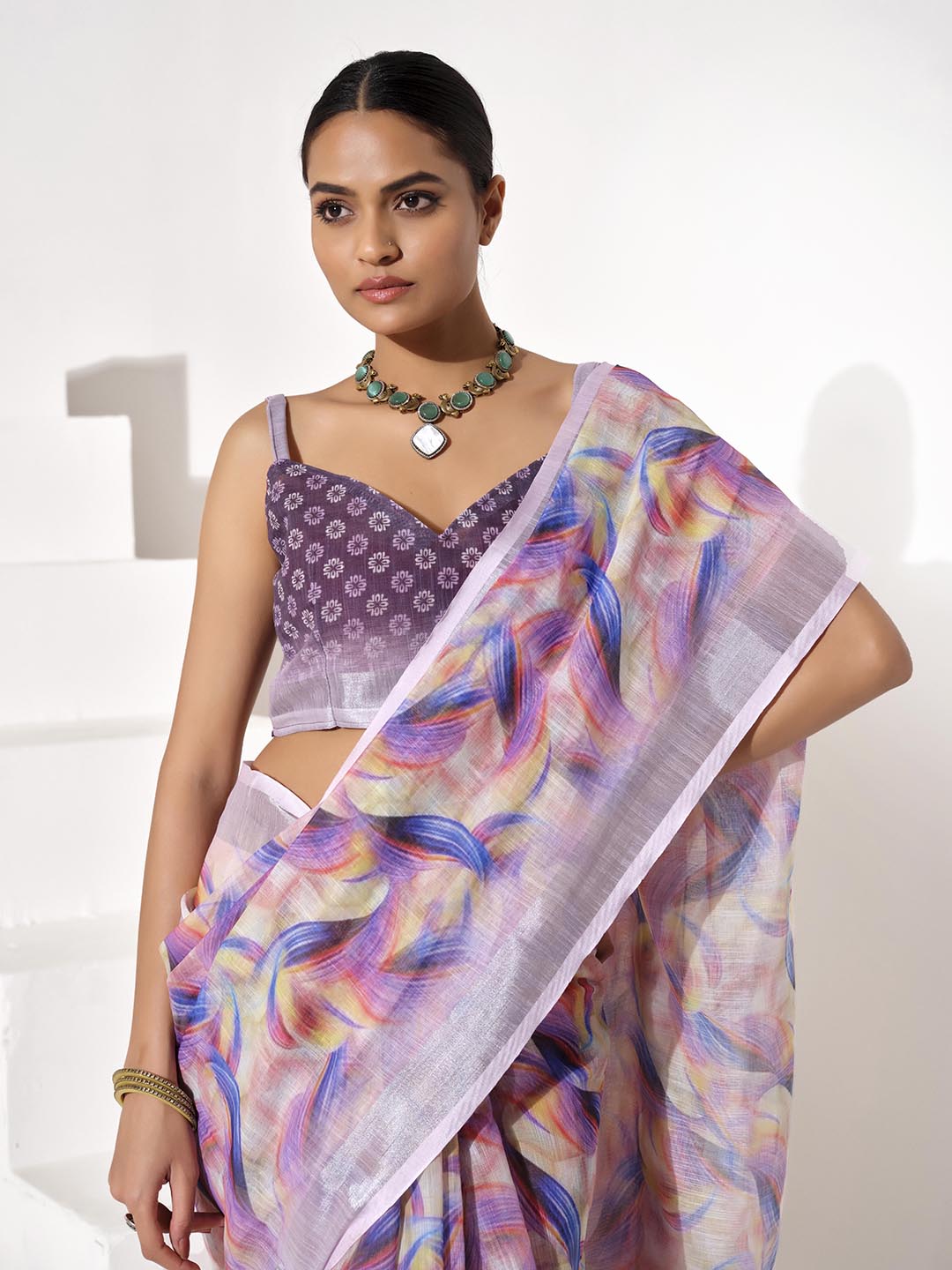 Purple Color Cotton Blend Fabric Beautiful Designer Printed Saree