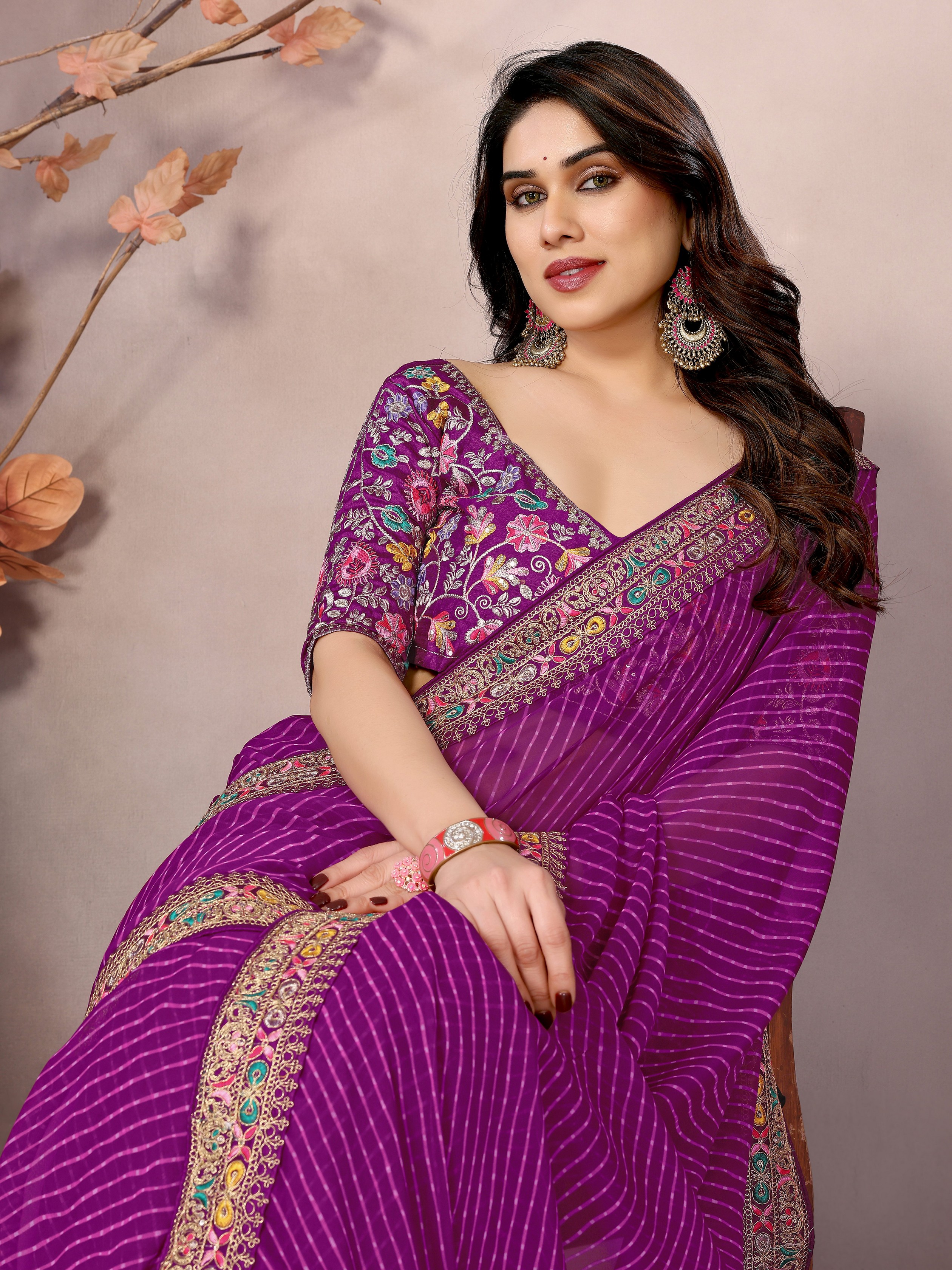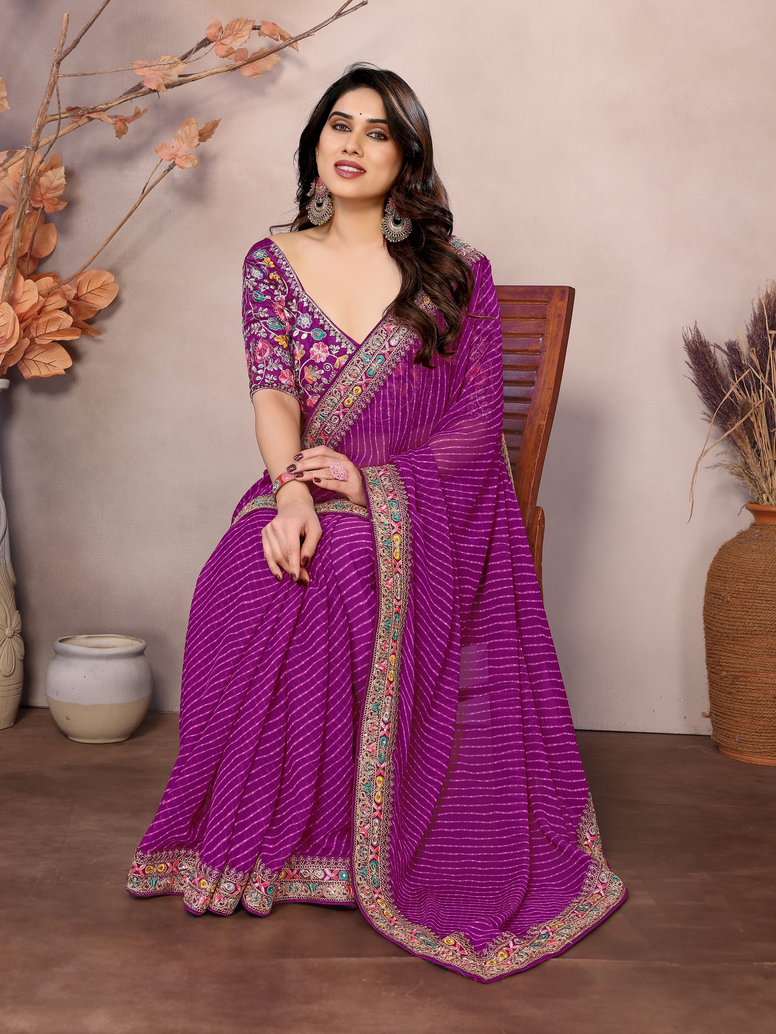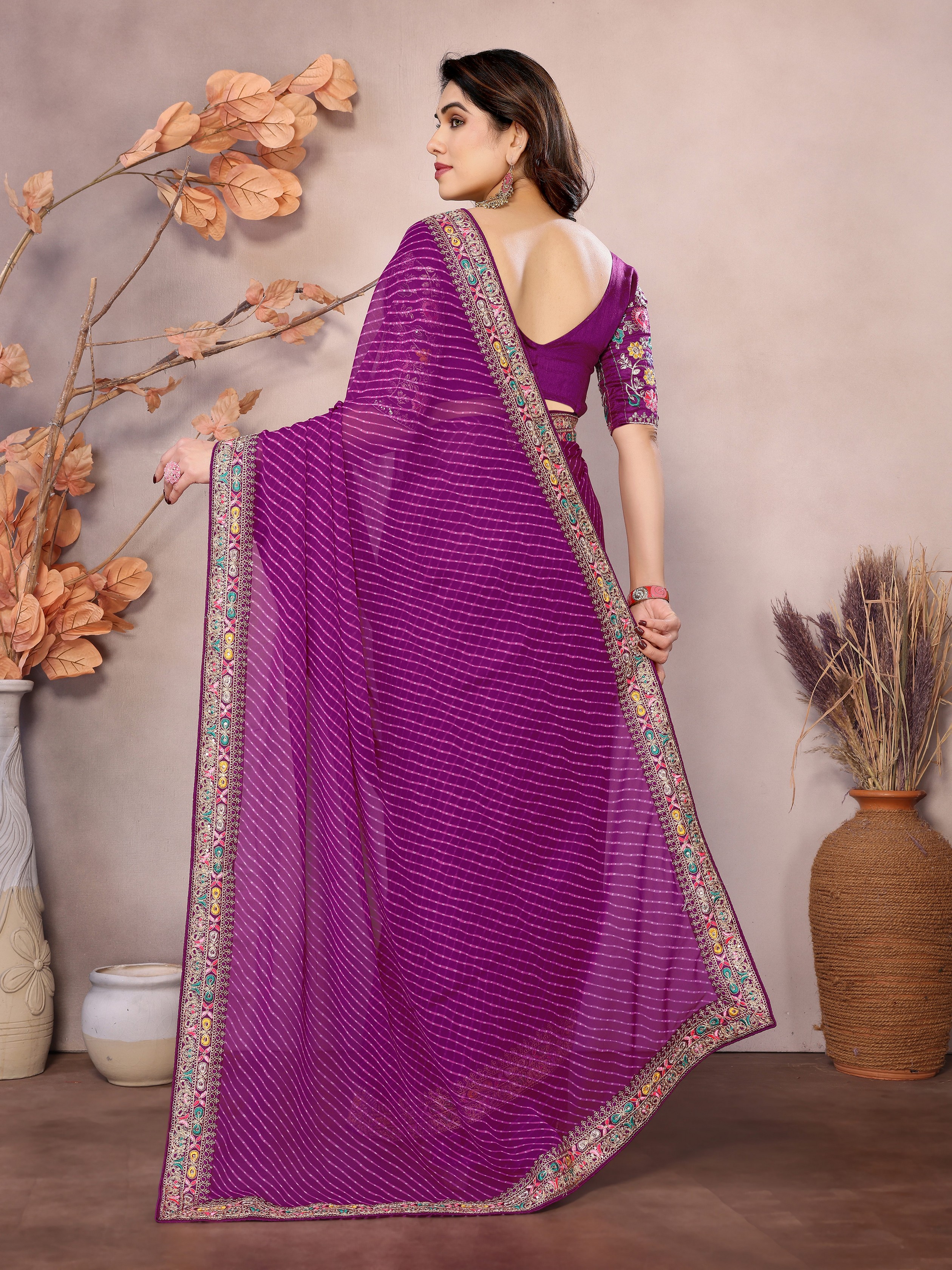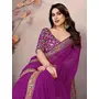 Purple Color Georgette Fabric Designer Embroidered Traditional Leheria Saree