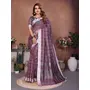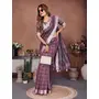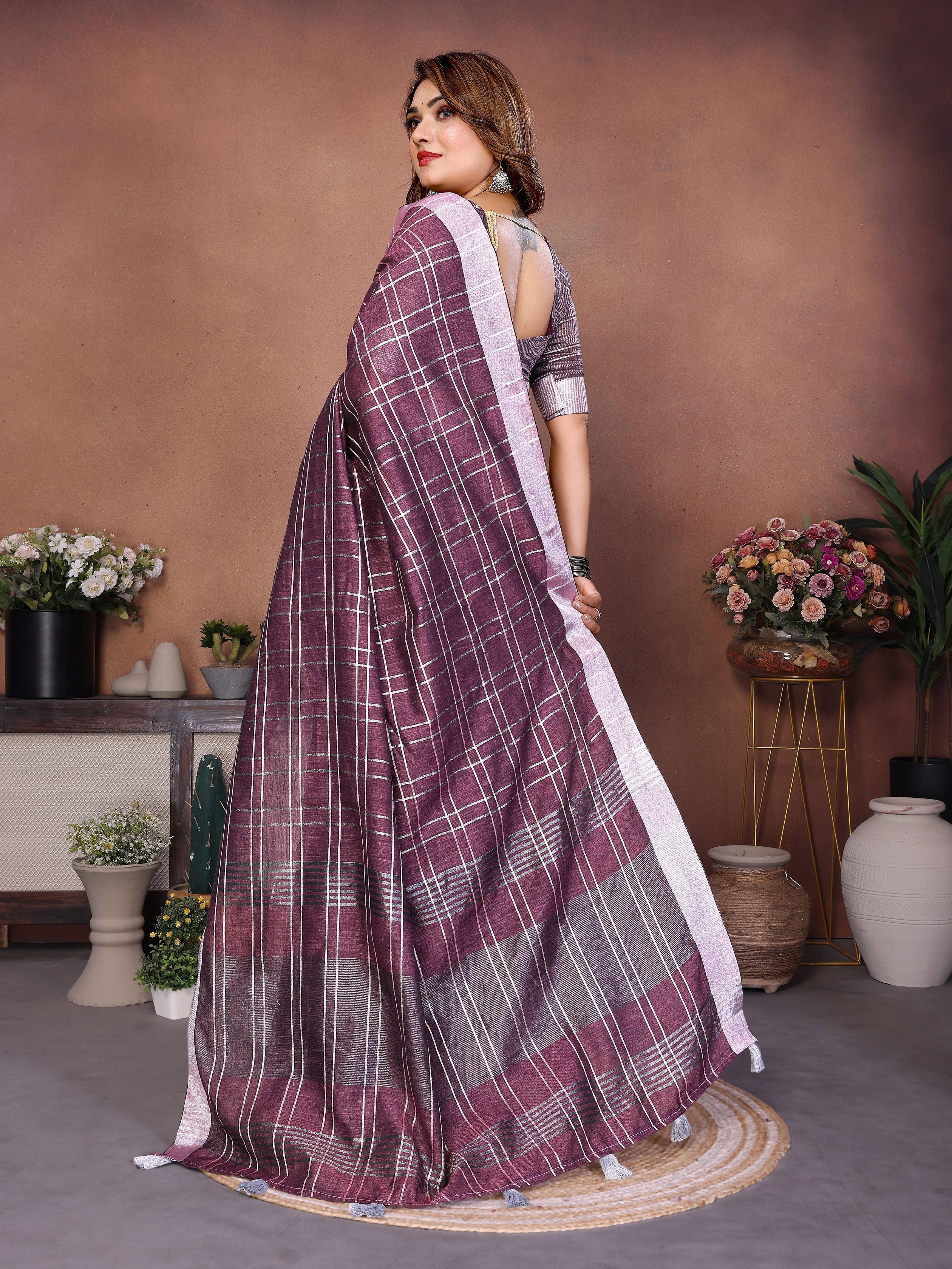 Purple Color Linen Cotton Fabric Woven Checks Designer Trendy Ethnic Saree