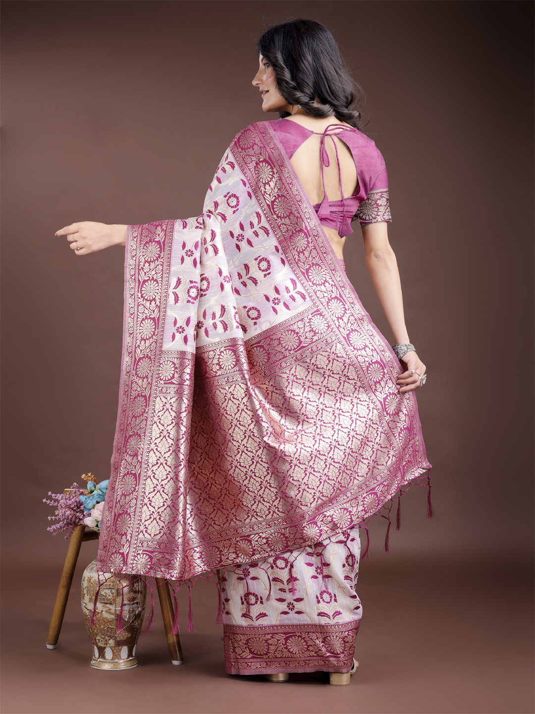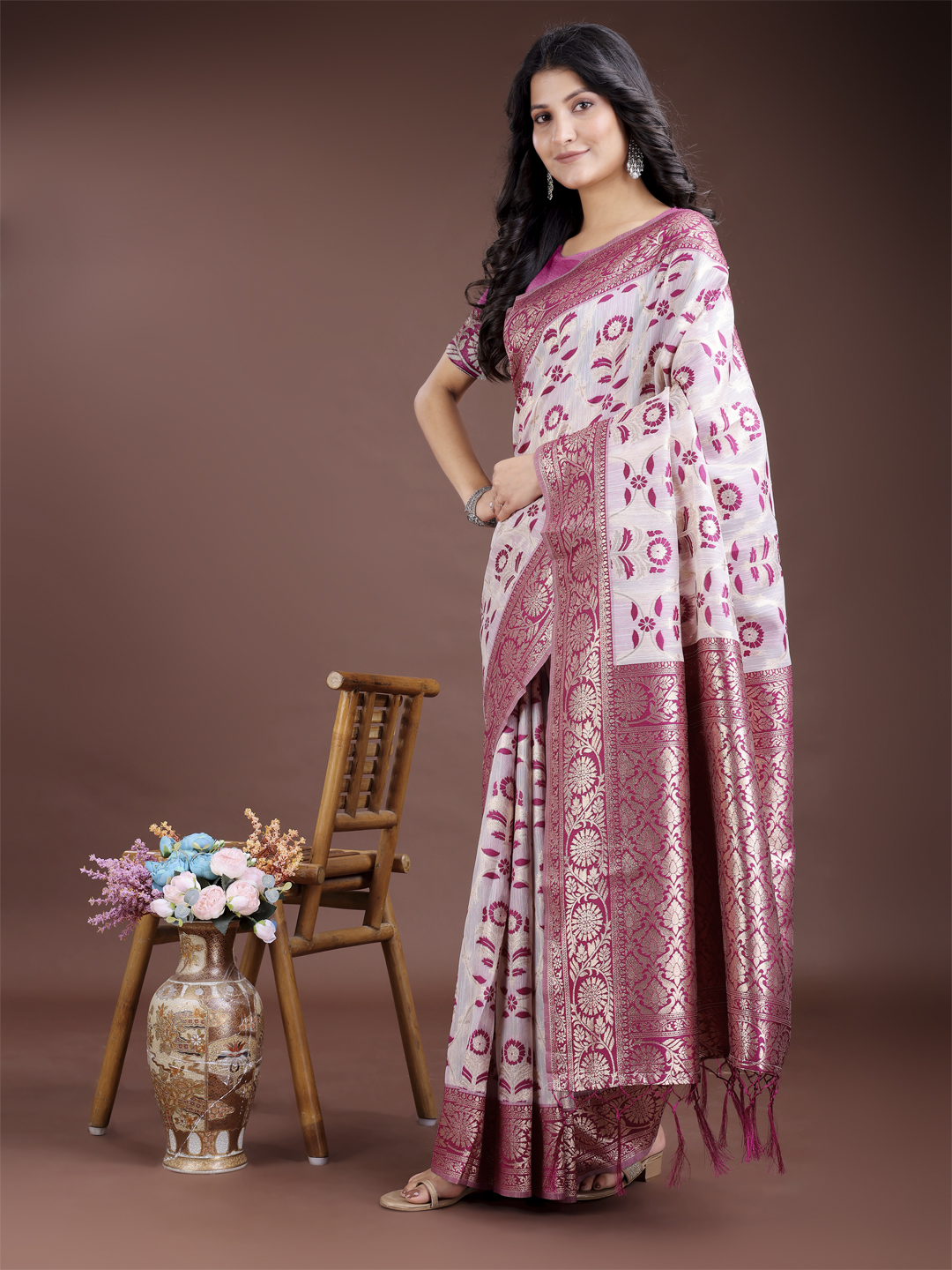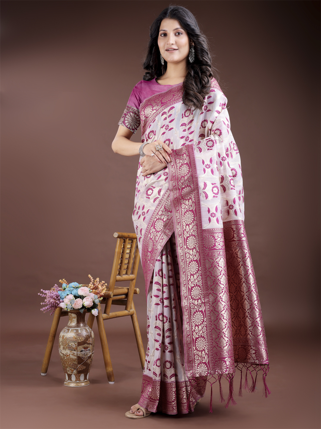 Purple Color Linen Cotton Wevon Jacquard Designer Beautiful Festive Saree