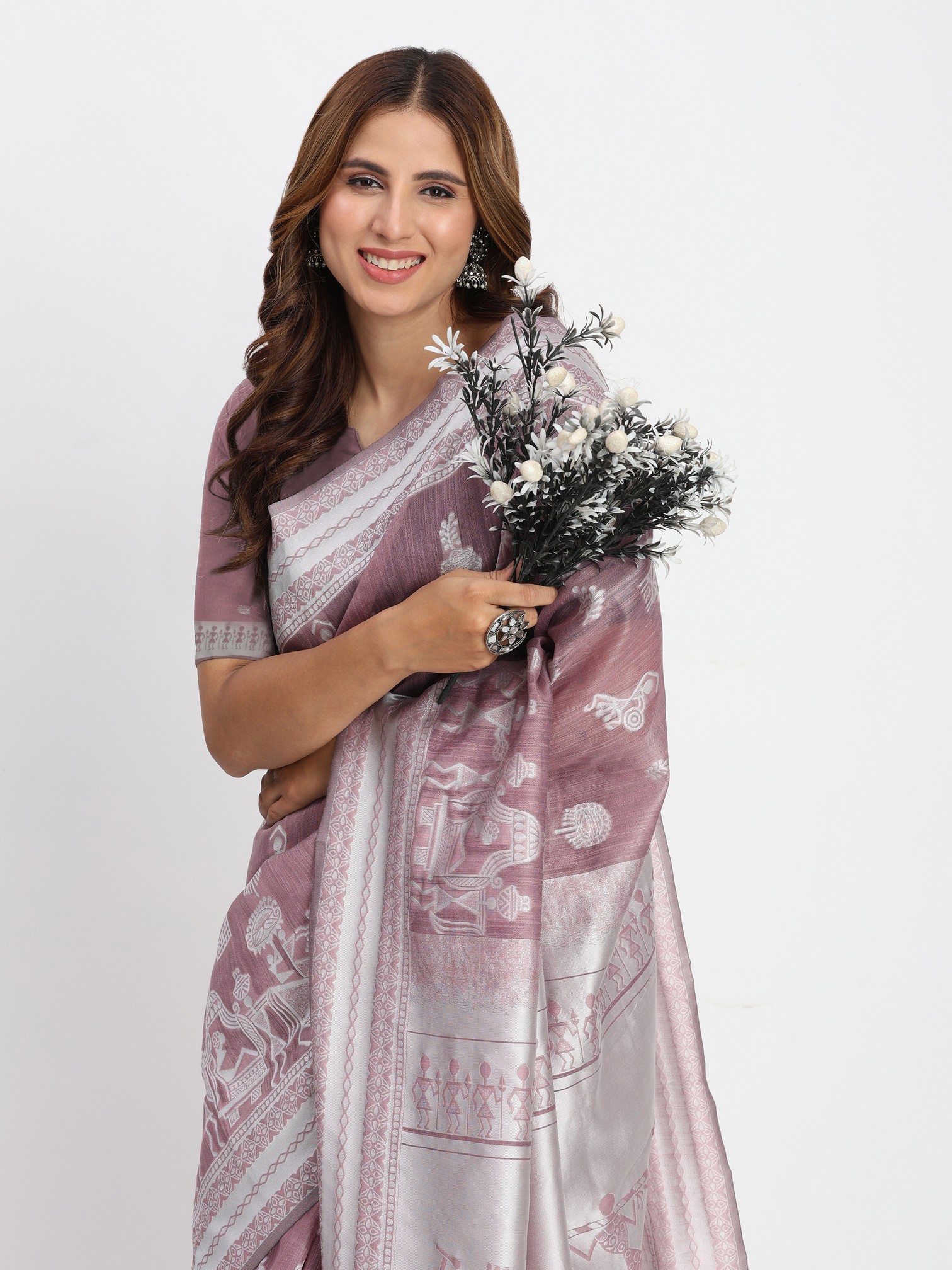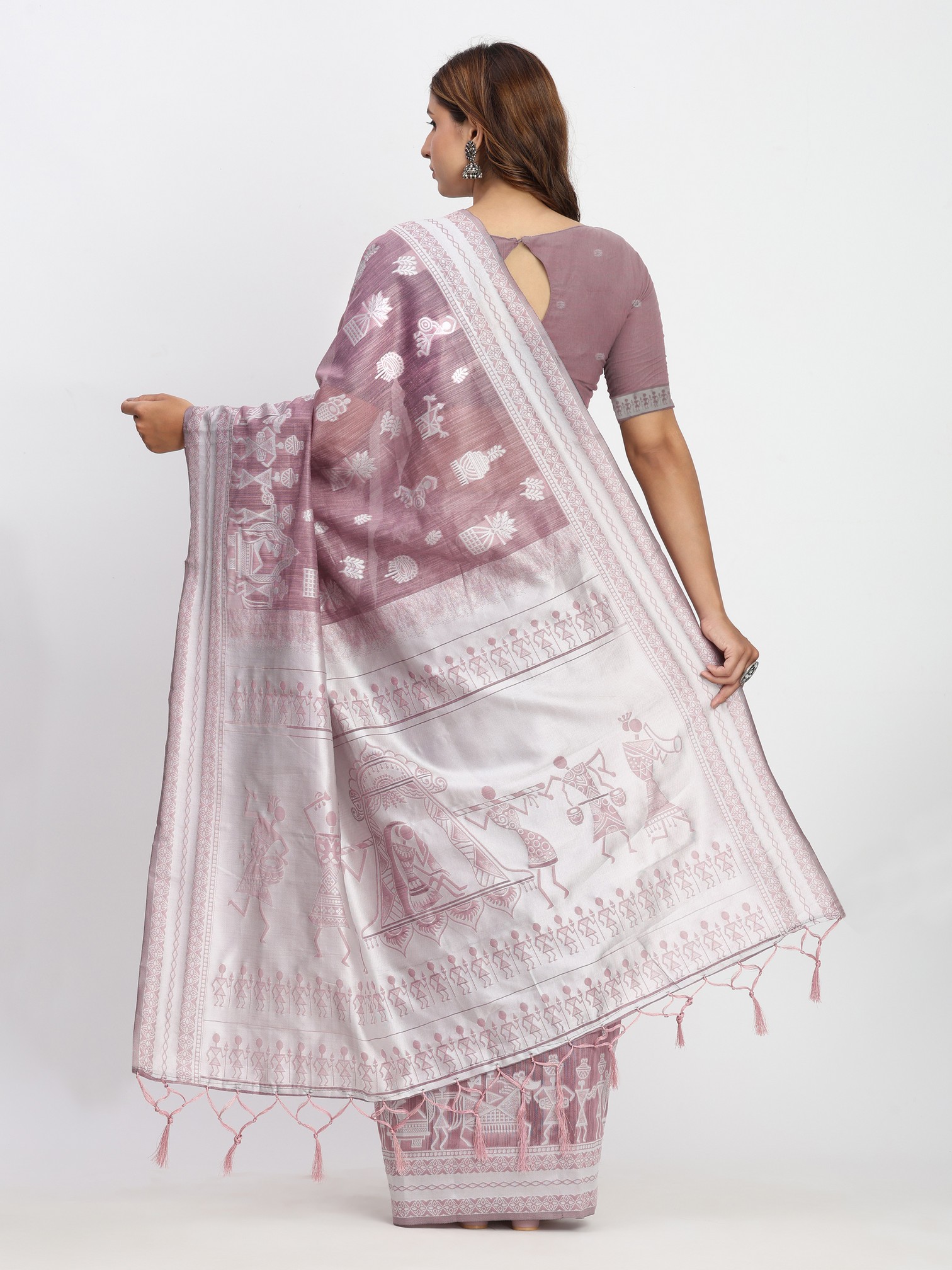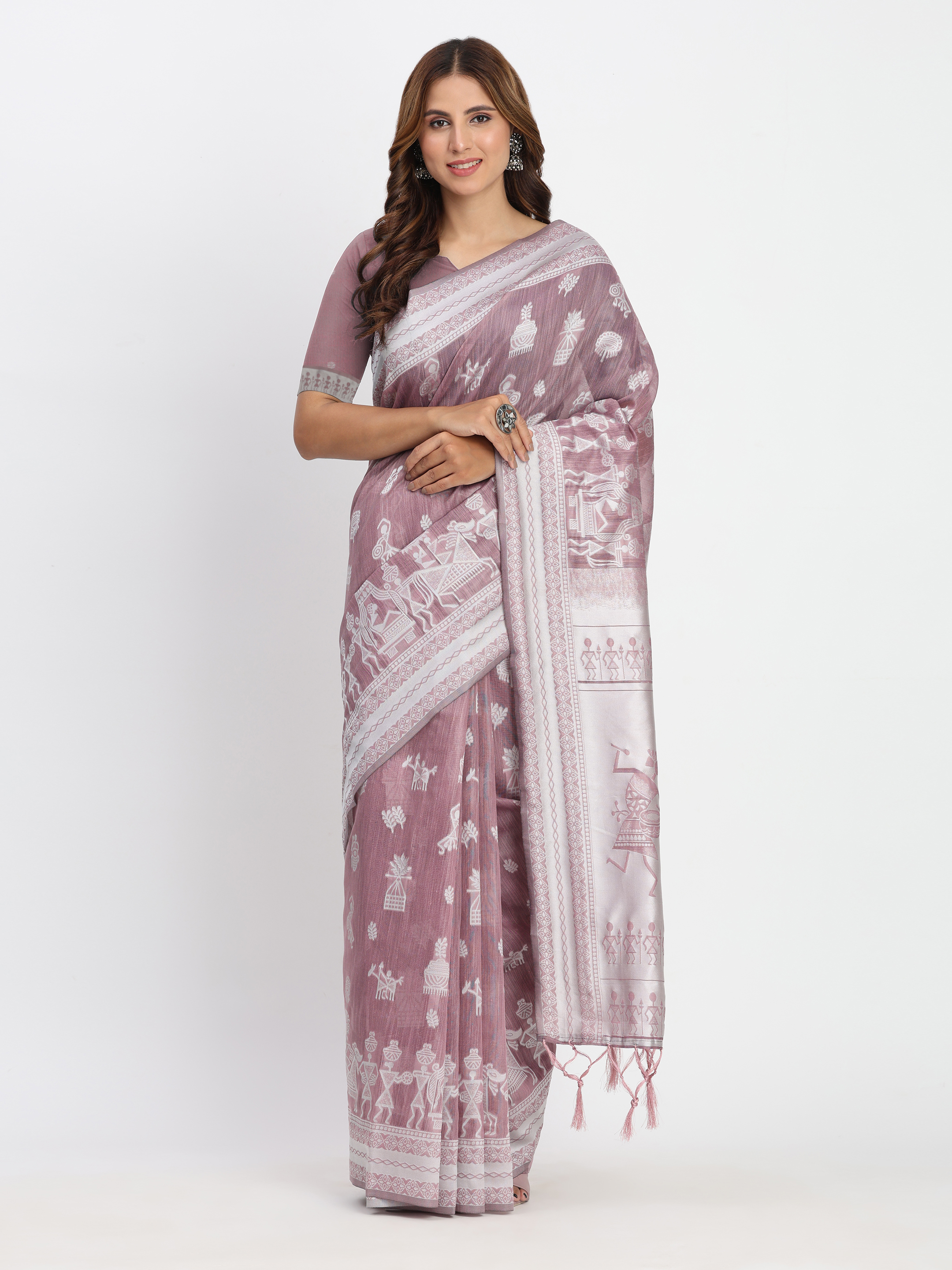 Purple Color Linen Cotton Woven Designer Graceful Ethnic Saree