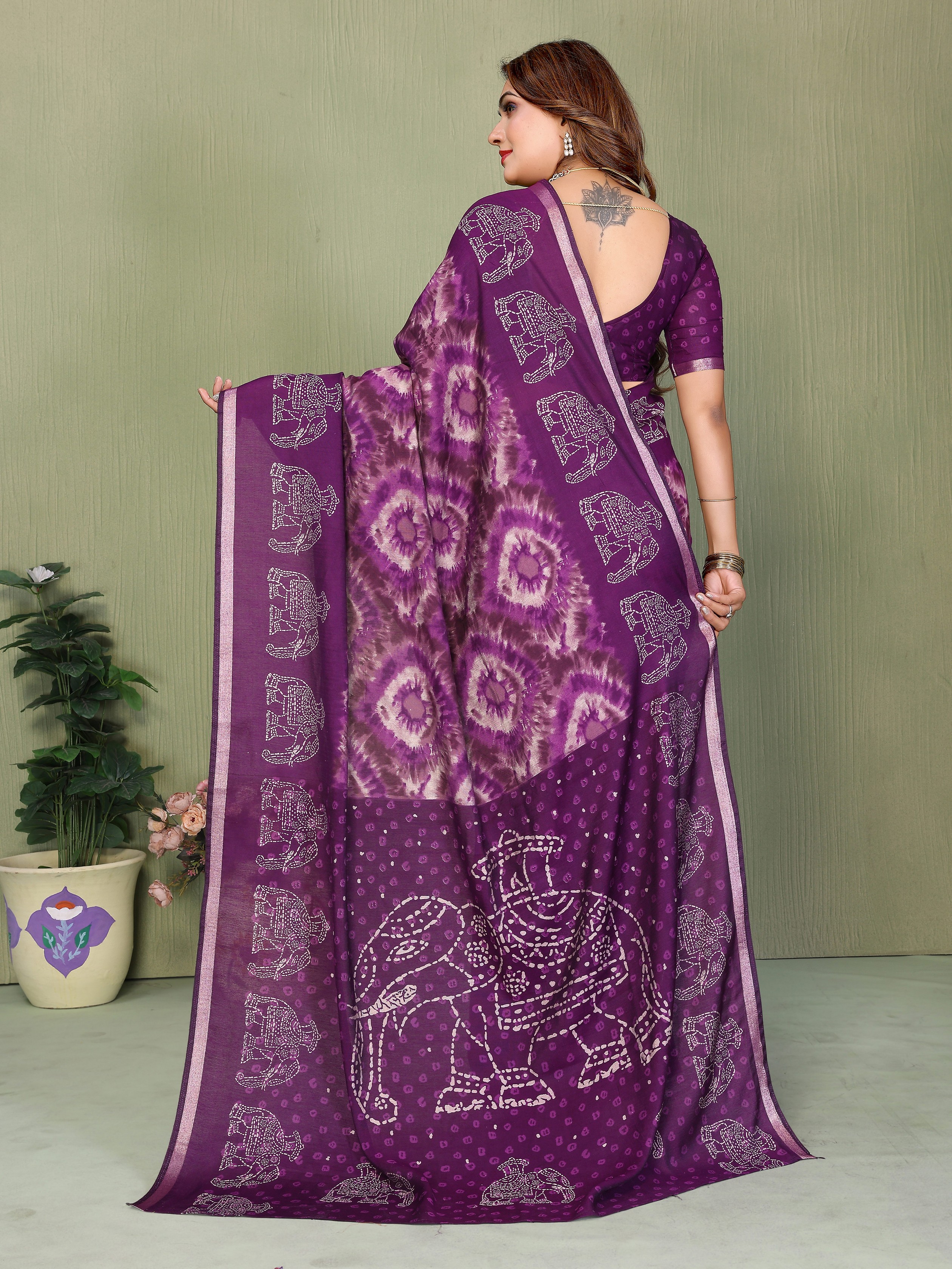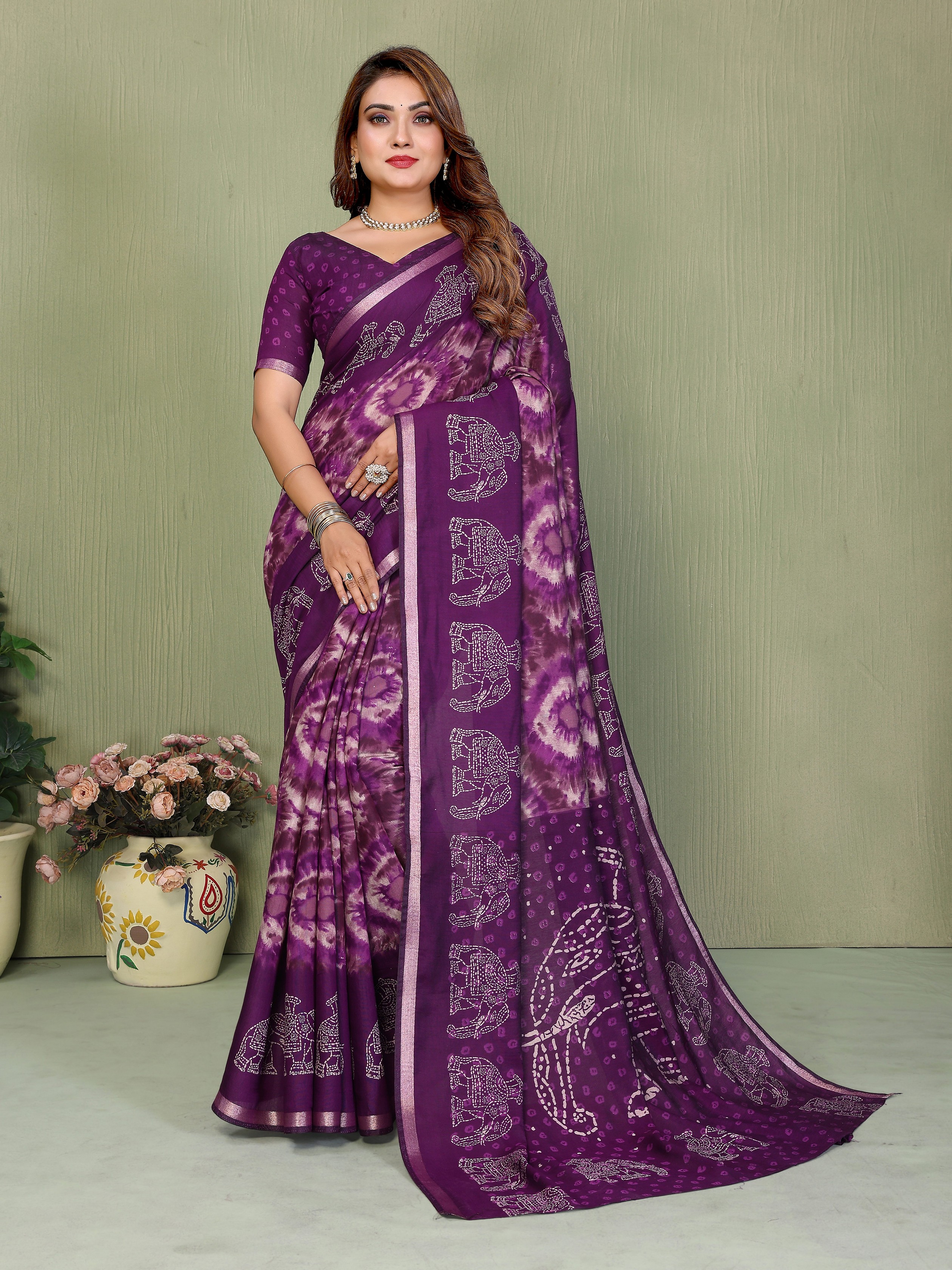 Purple Color Mul Cotton Fabric Designer Printed Festive Special Saree