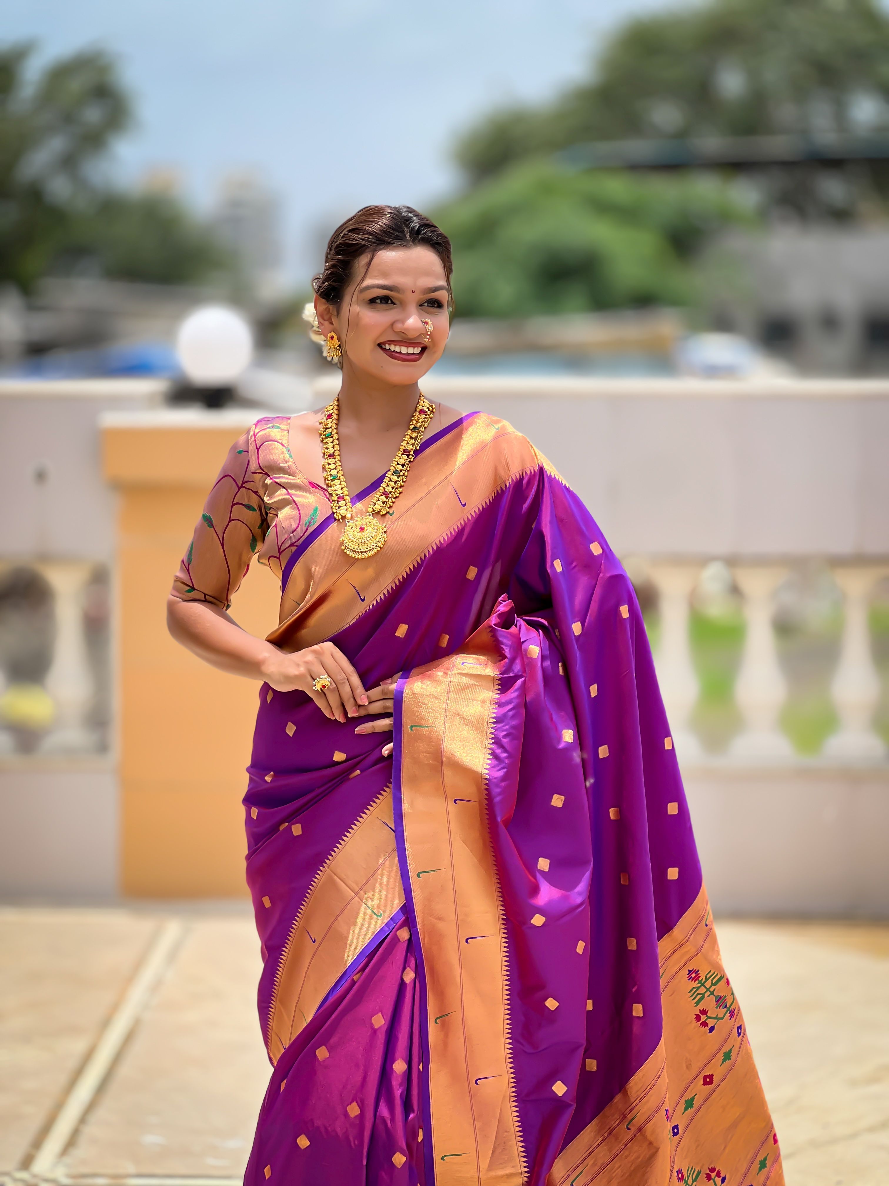 Purple Color Paithani Silk Woven Jacquard Jari Designer Ethnic Saree