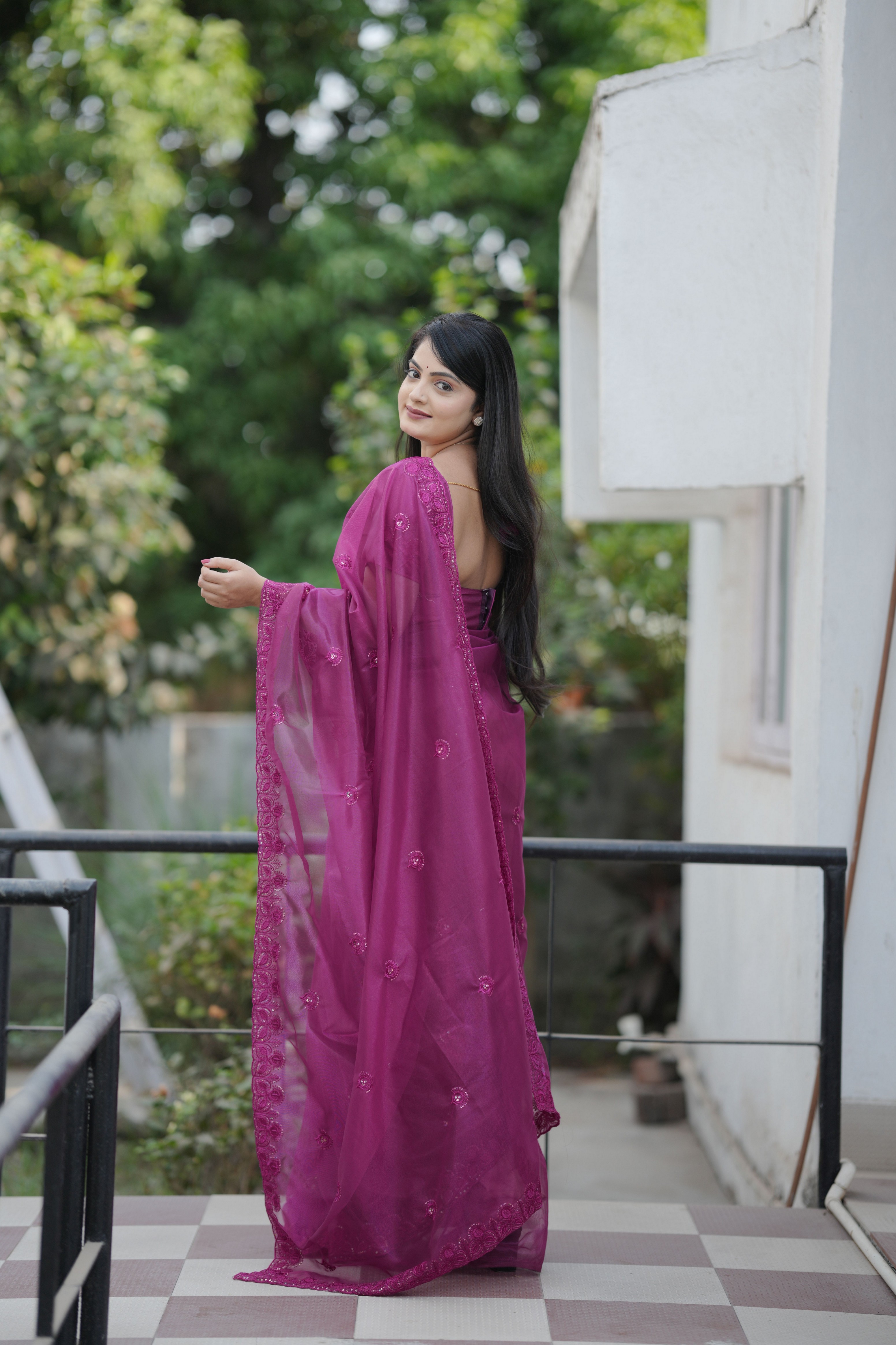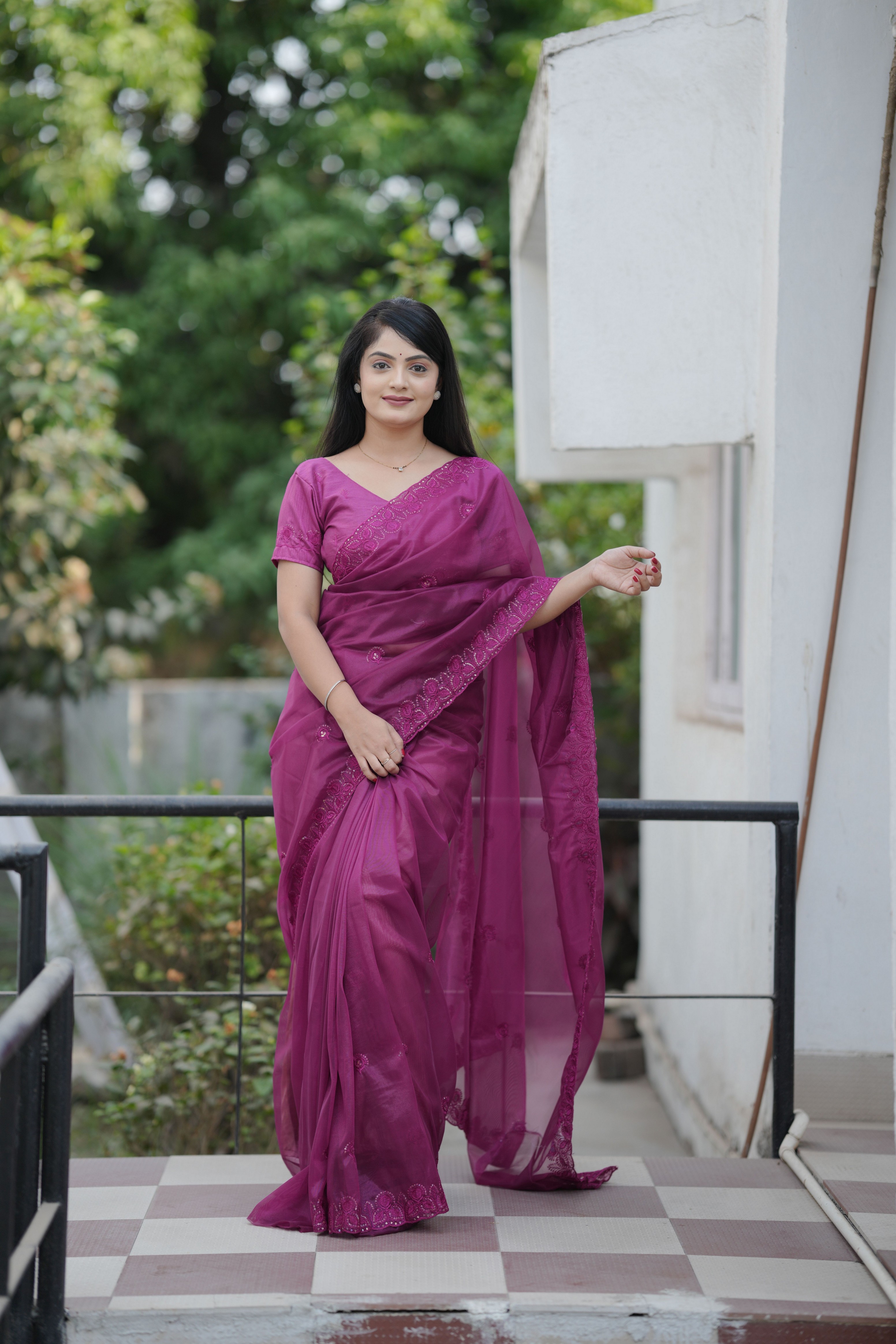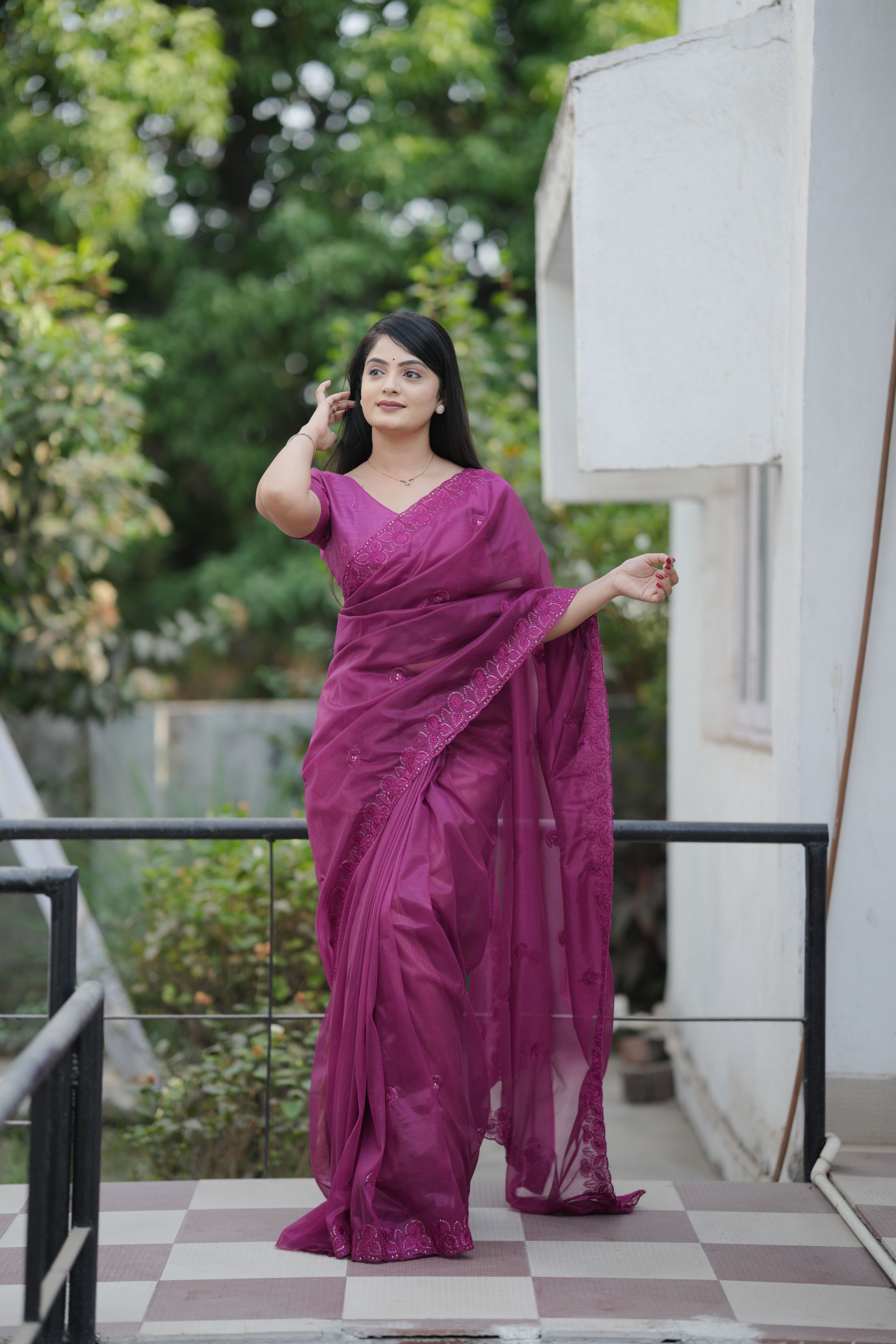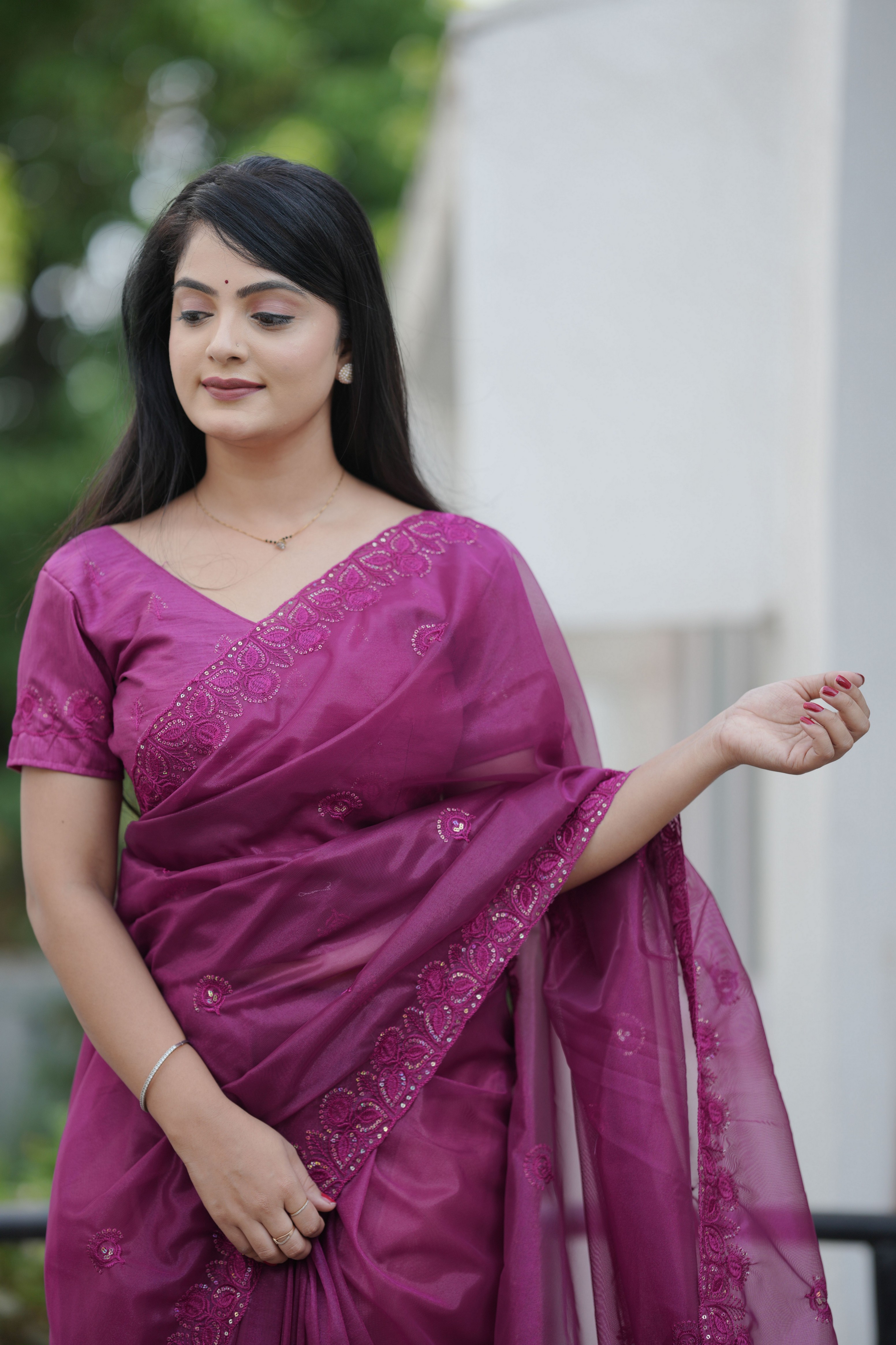 Purple Color Twill Net Fabric Sequins Work Ceremonial Saree