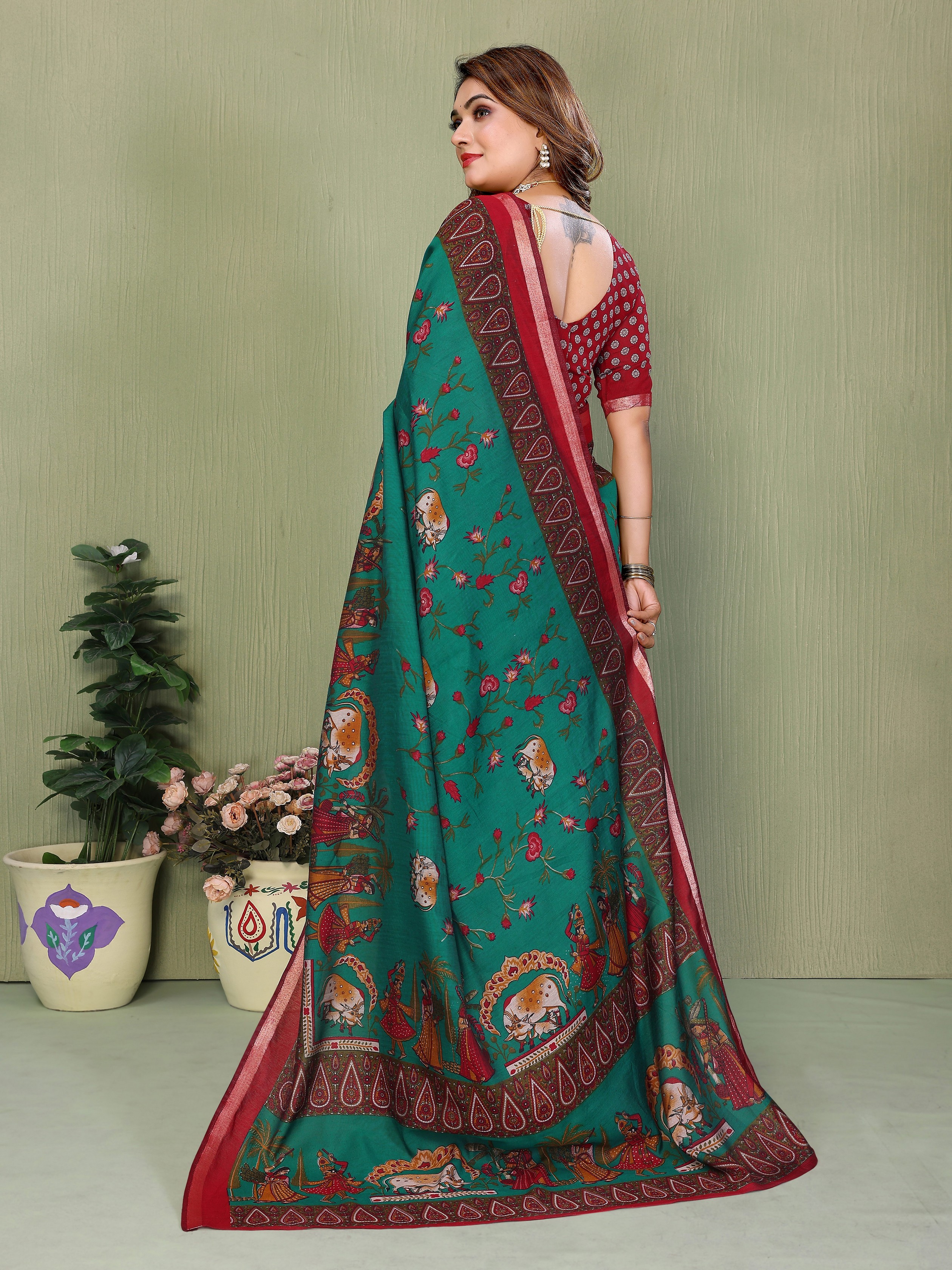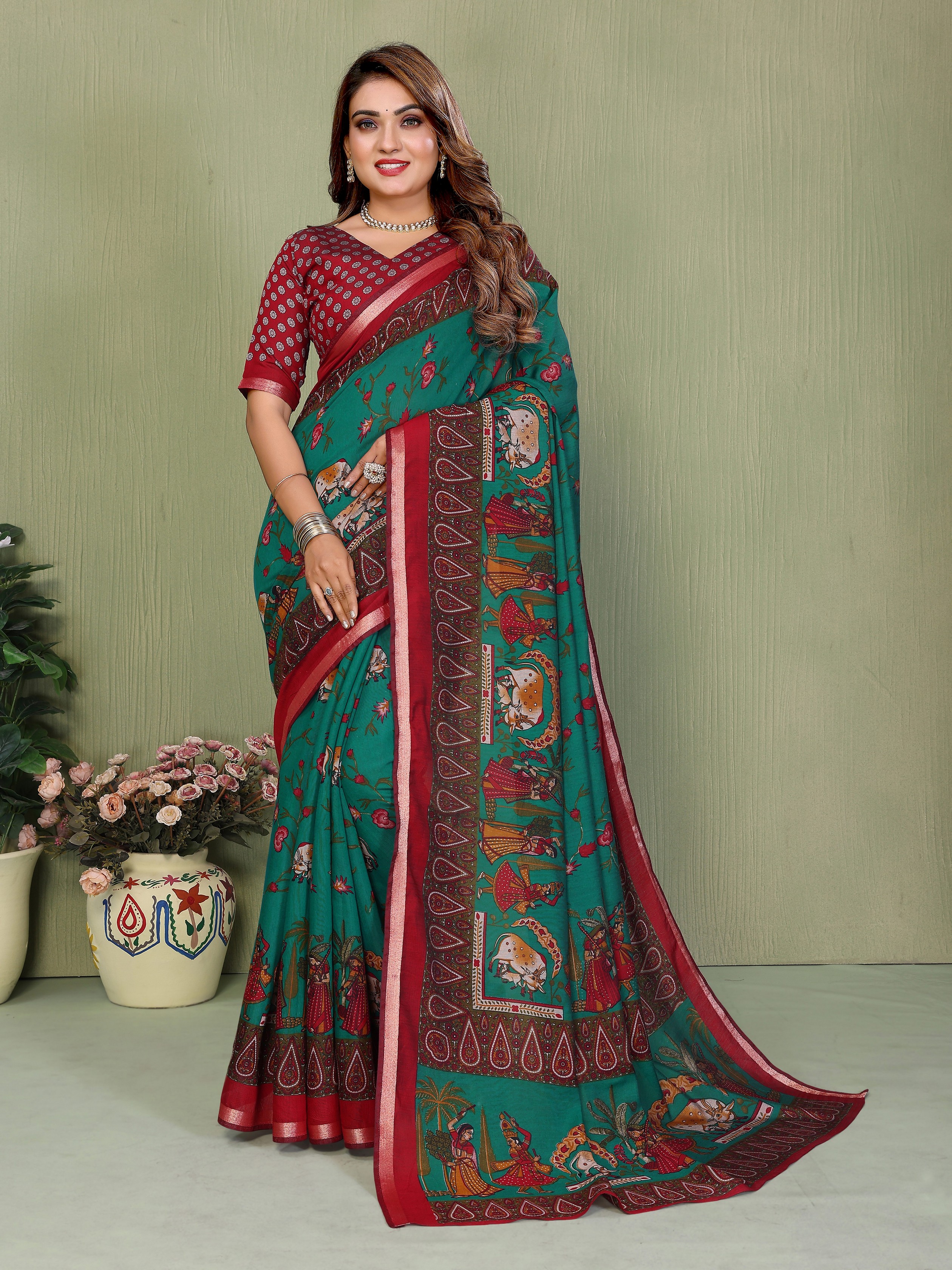 Rama Color Mul Cotton Designer Kalamkari Printed Ethnic Partywear Saree