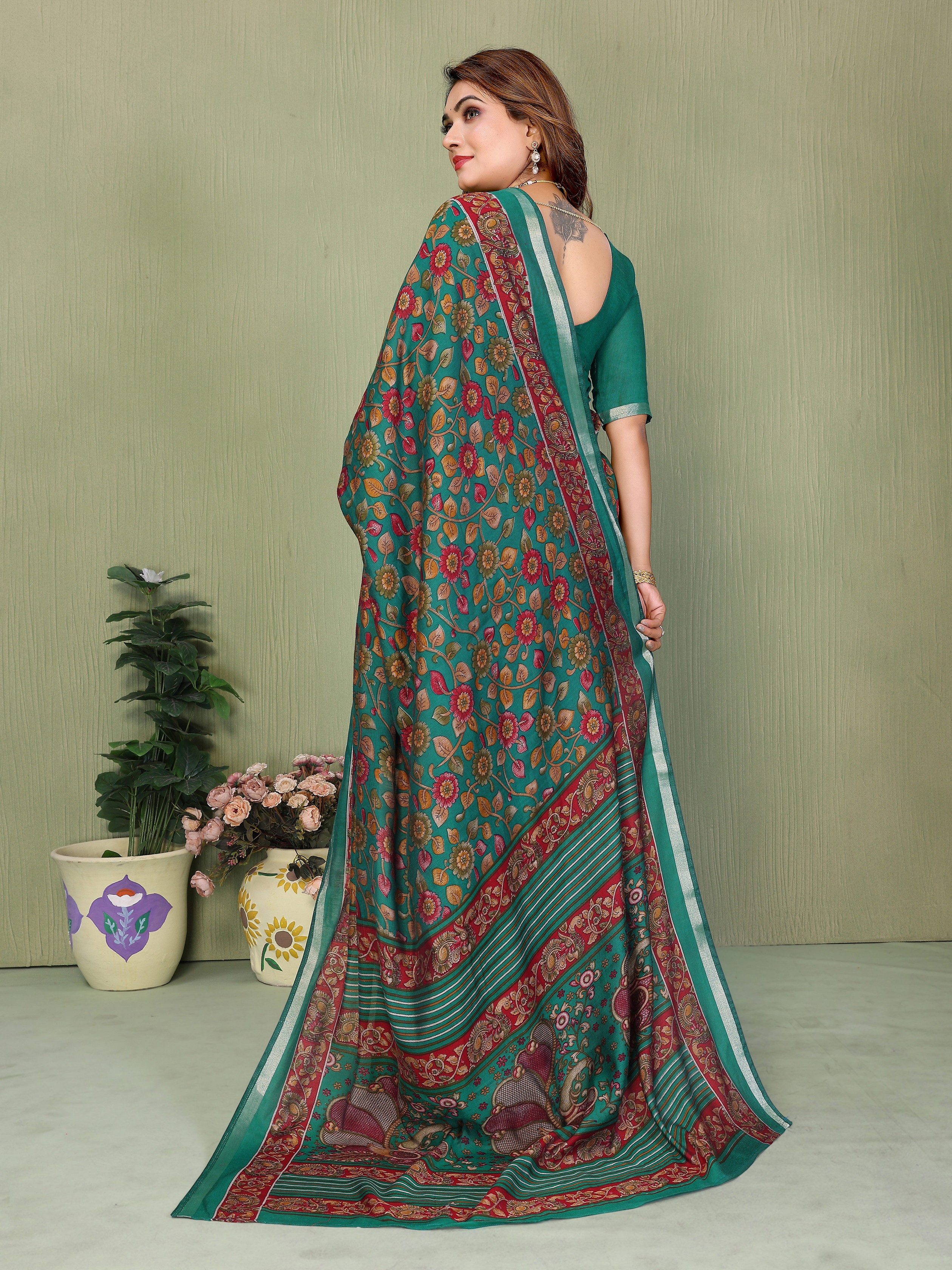 Rama Color Mul Cotton Fabric Designer Printed Partywear Saree