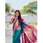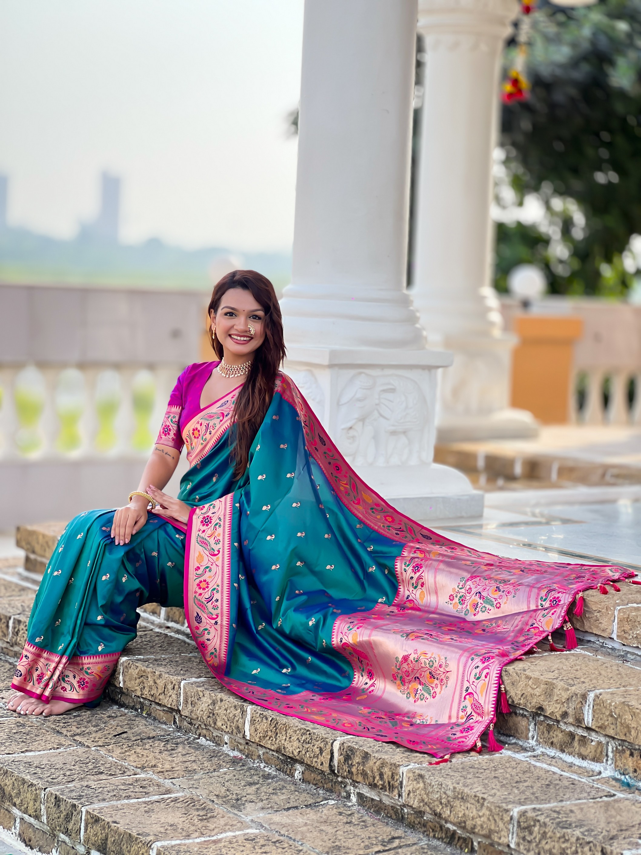 Rama Color Paithani Silk Fabric Woven Meenakari Jacquard Designer Saree