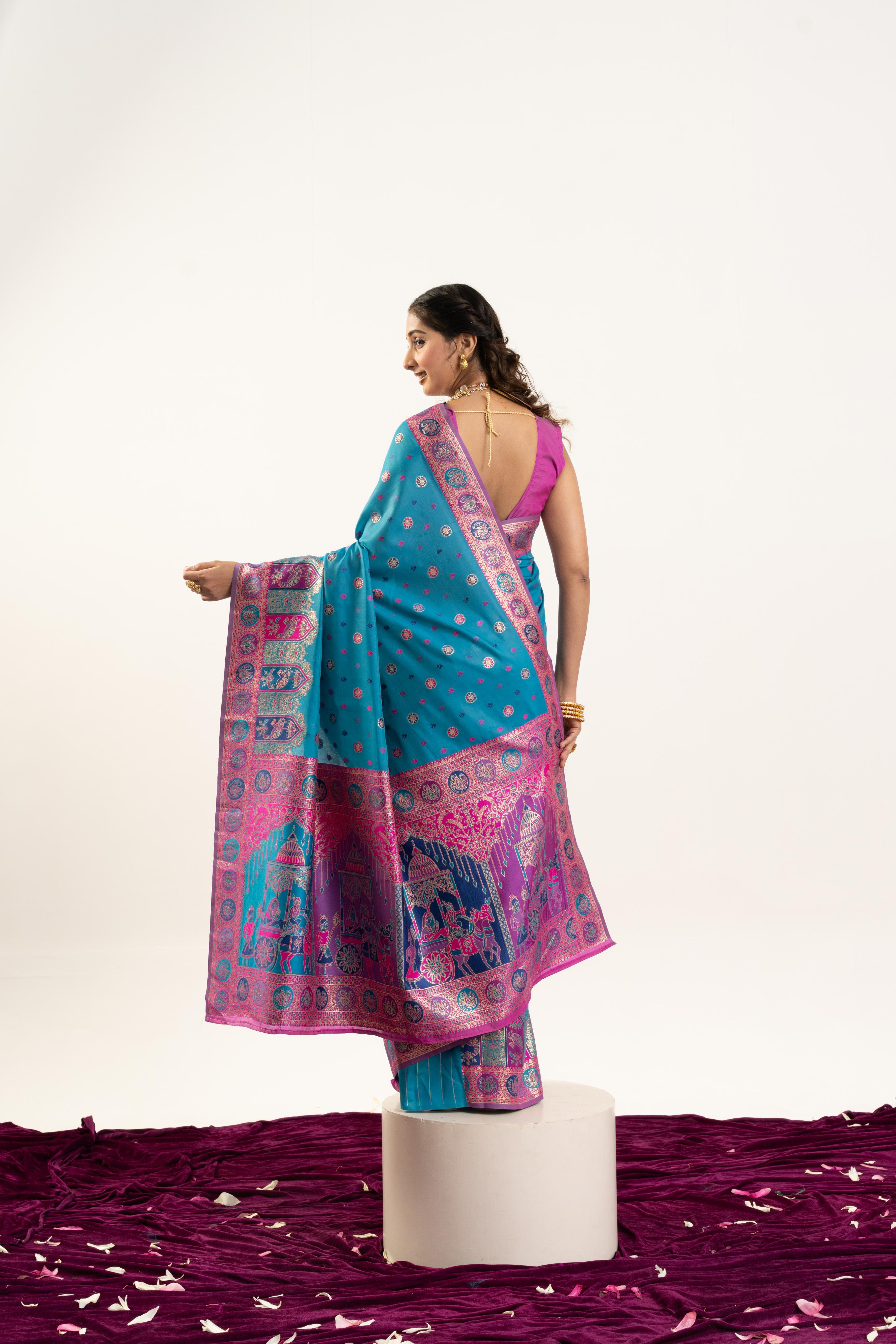 Rama Color Woven Designer Banarasi Pashmina Silk Saree