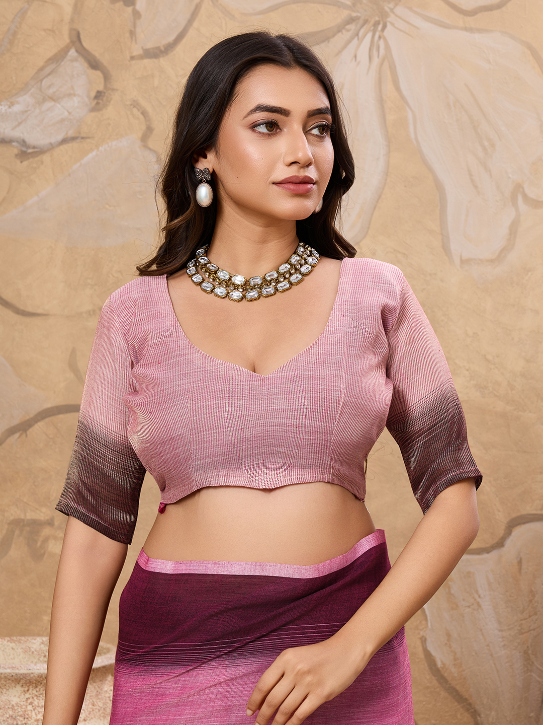 Rani Pink color Linen Based Fabric Ethnic Woven Designer Ceremonial Saree