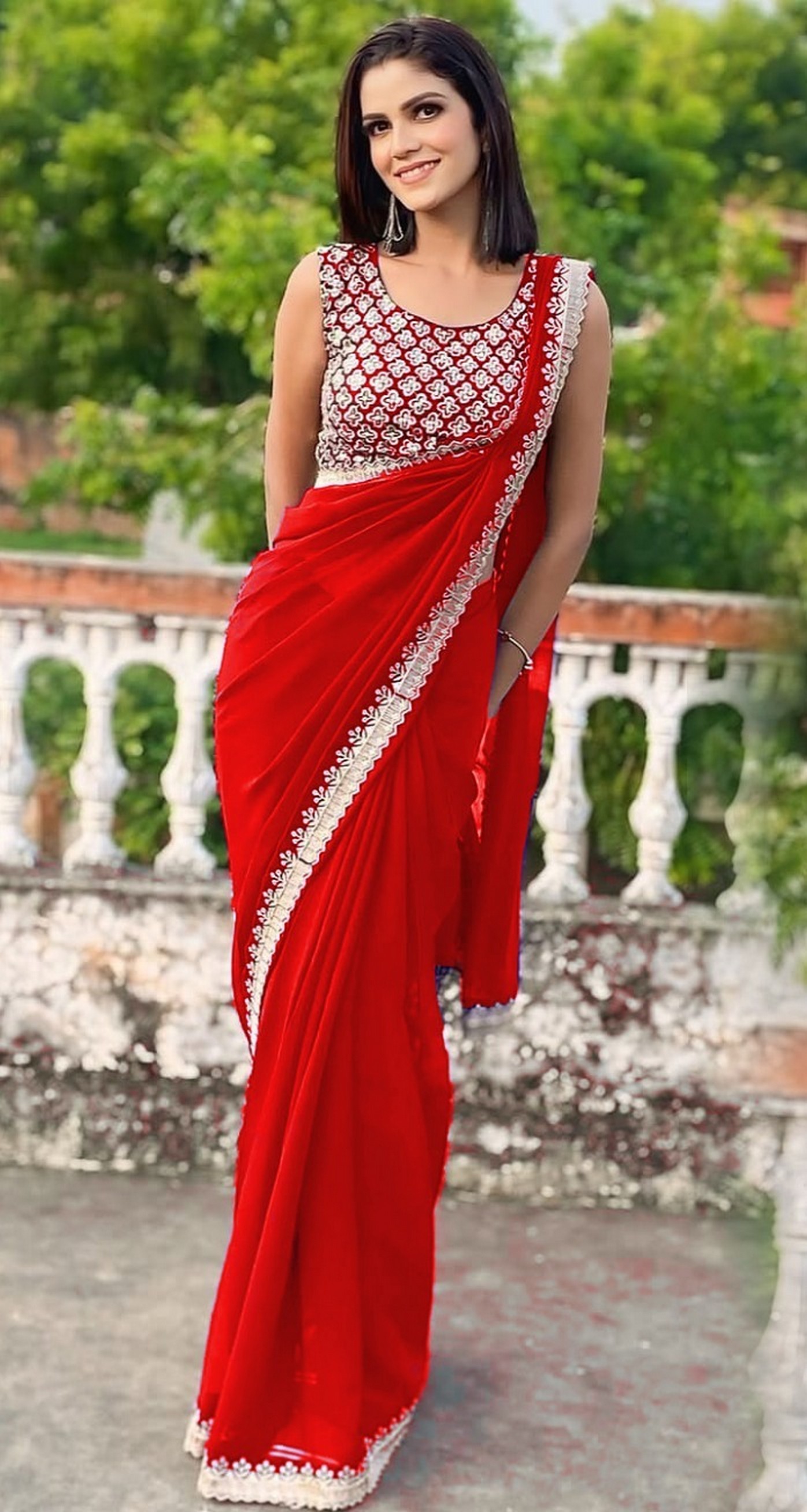 Red Color Beautiful Ceremonial Special Bollywood Saree