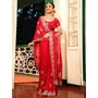 Red Color Embroidery Work Tissue Fabric Beautiful Ceremonial Saree