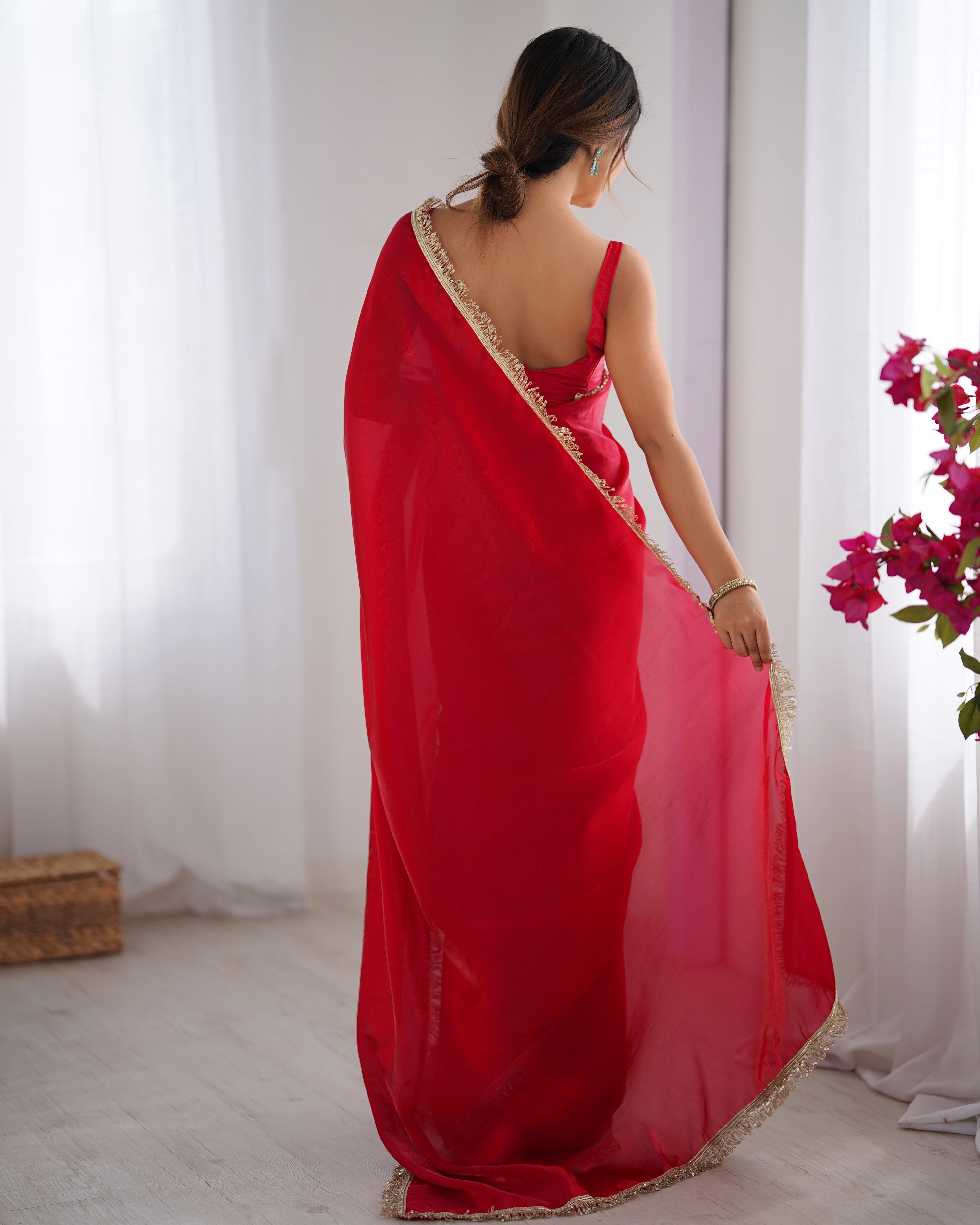 Red Color Fendy Satin Rich Looks Ceremonial Girlie Saree