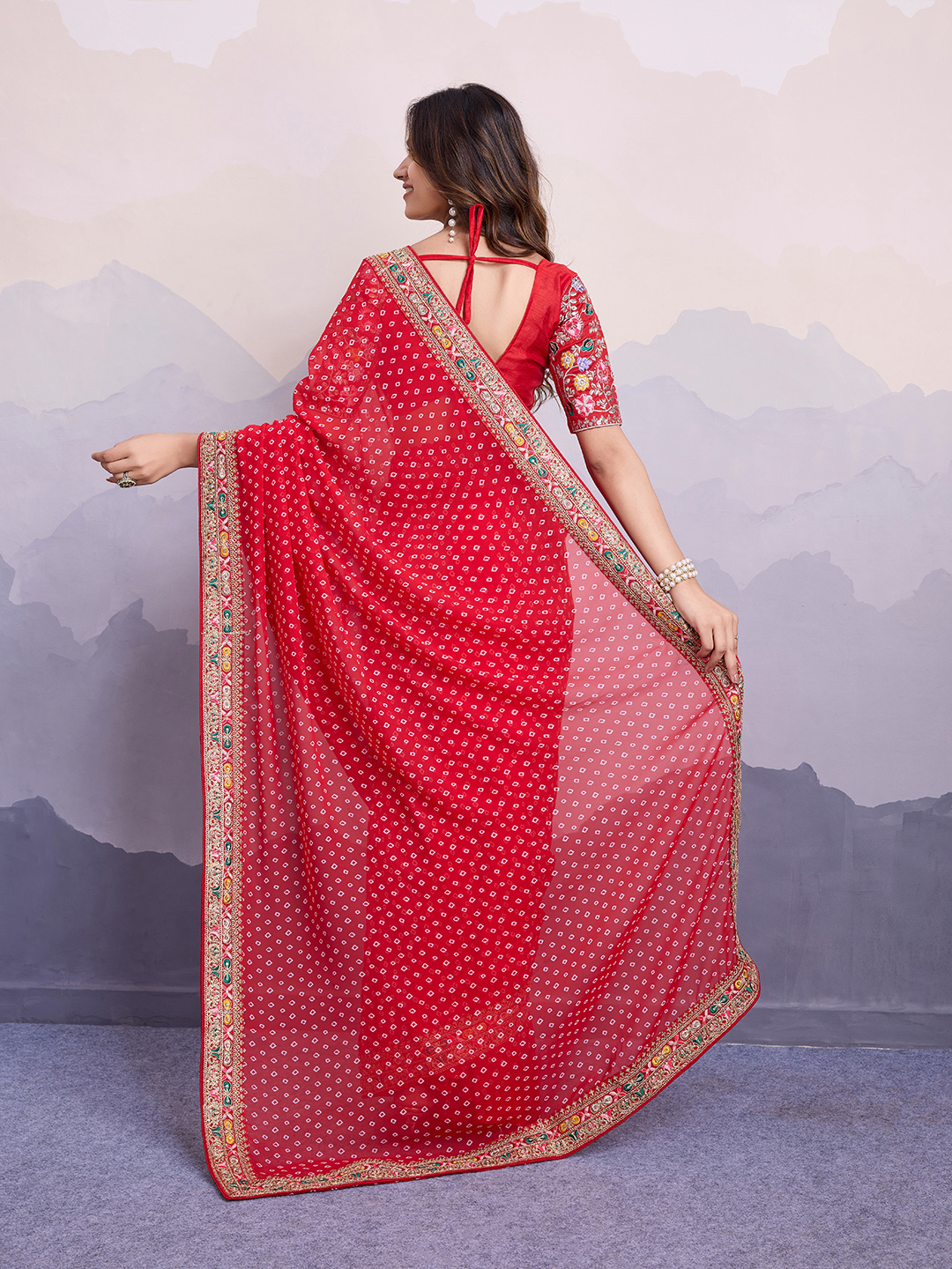 Red Color Georgette Fabric Designer Partywear Bandhej Saree