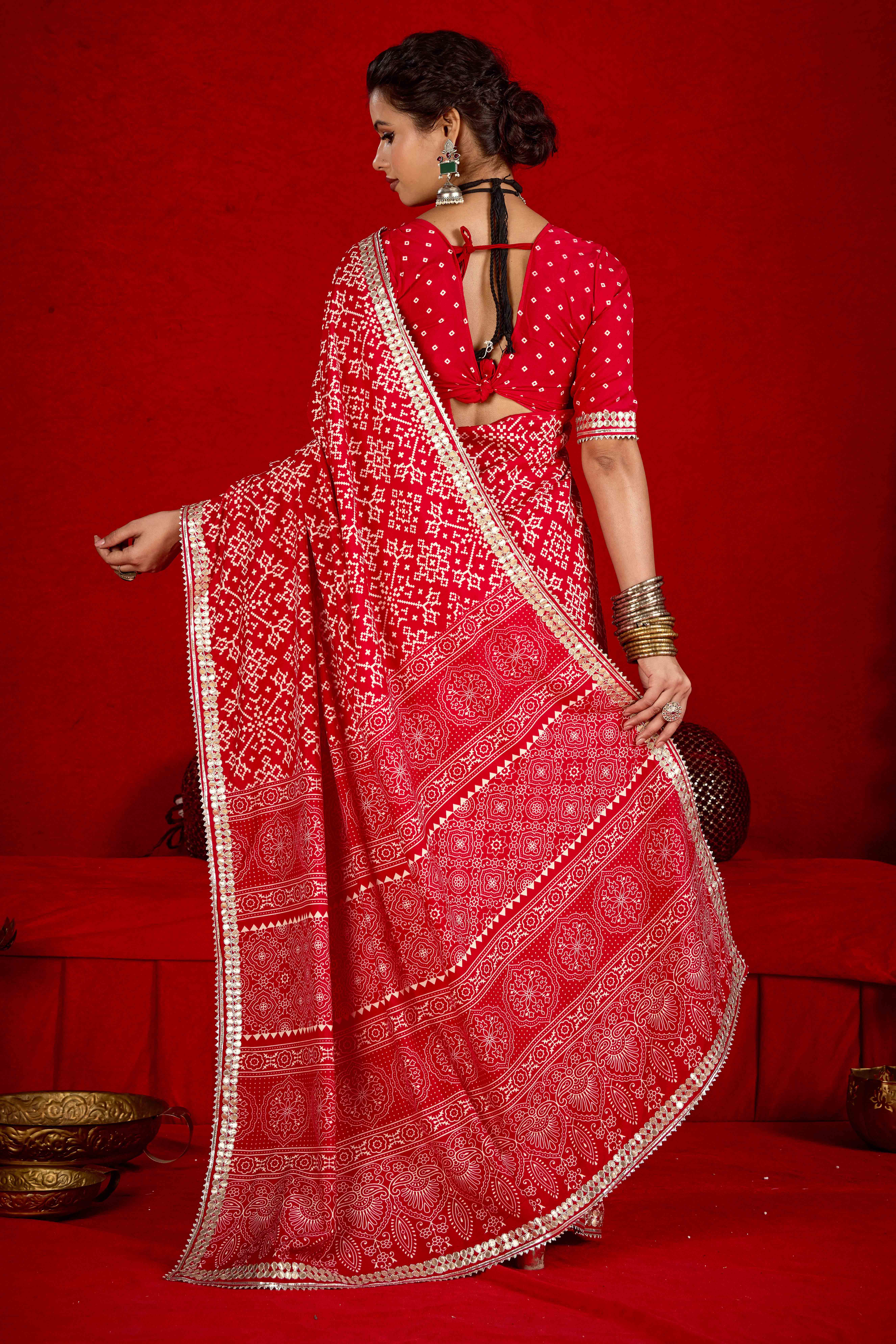 Red Color Velvet Tussar Silk Beautiful Partywear Saree