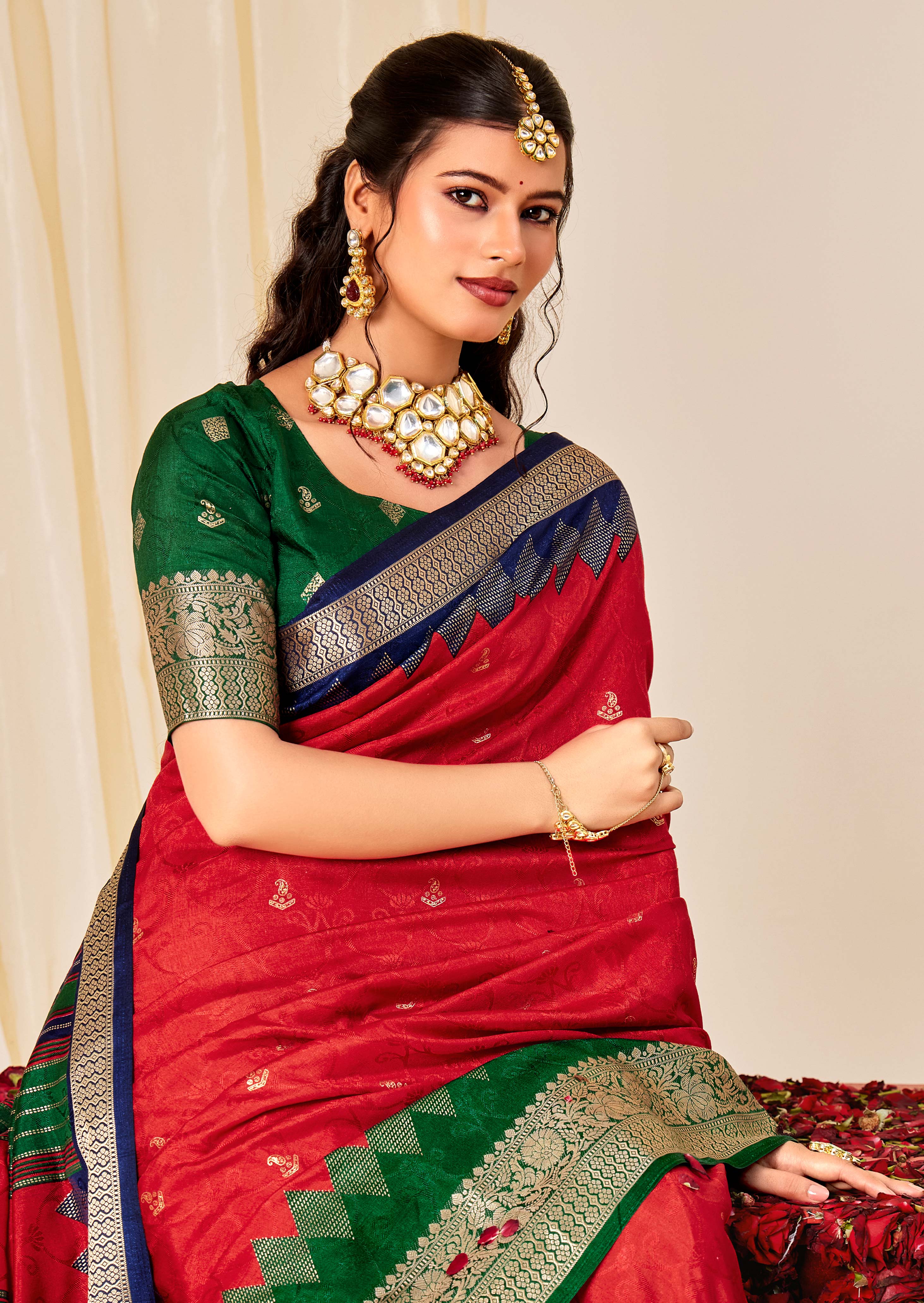 Red Color Velvet Tussar Silk Fabric Woven Saree With Smart Elegant Print