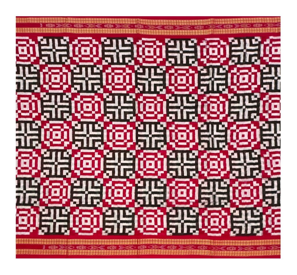 SAMBALPURI BANDHA CRAFT sambalpuri cotton saree with blouse piece(New Pasapali design in red white and black colors combination)