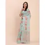 Sea Green Color Linen Cotton fabric Woven Border Saree With Smart Print Designer Looks