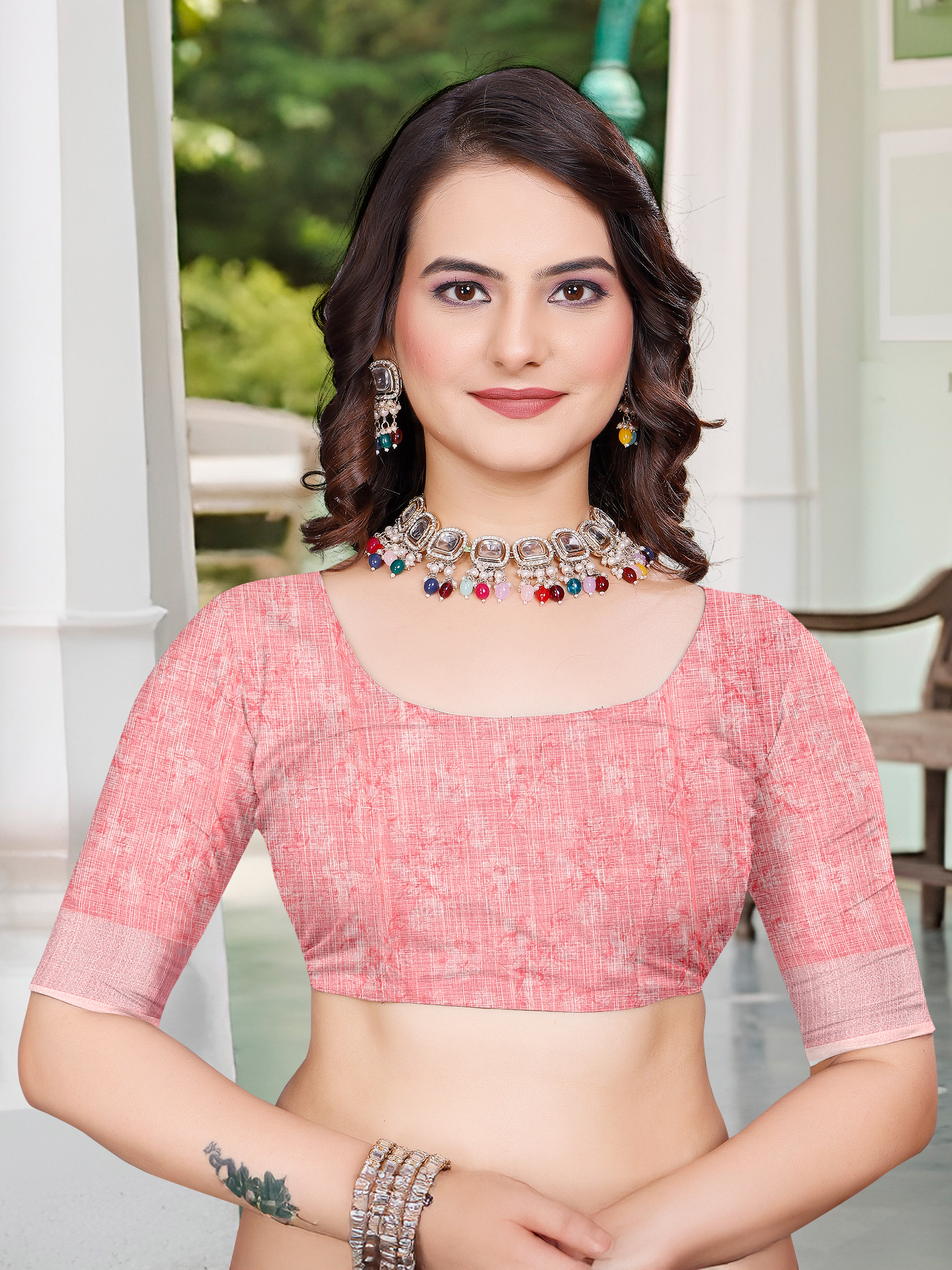 Garb These Fastive Saree in Fine Colored.These Saree Are Linen Cotton And Blouse is Fabricated On Linen Cotton Pair.Its Beautified With Wevon Jari Border With Designer Digital Printed.