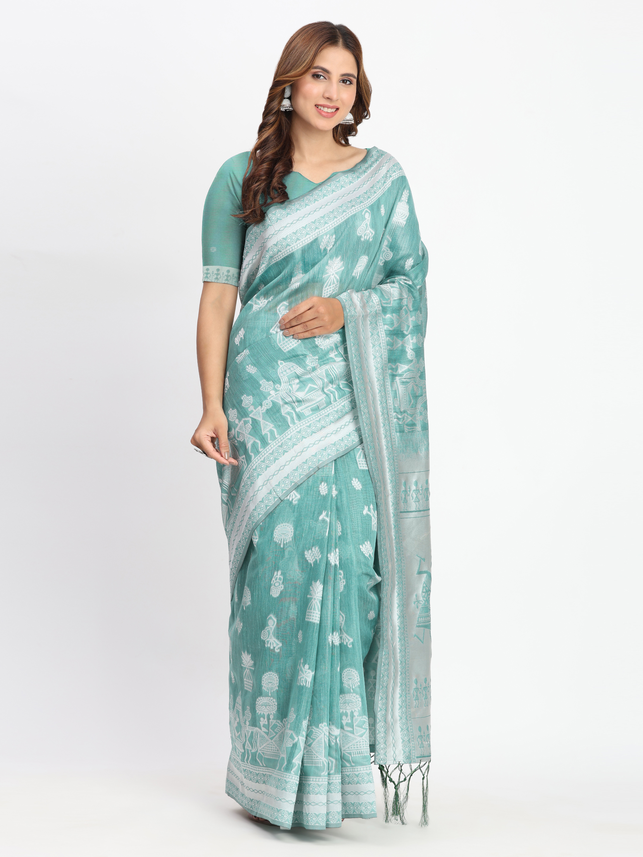 Sea Green Color Linen Cotton Woven Designer Graceful Ethnic Saree