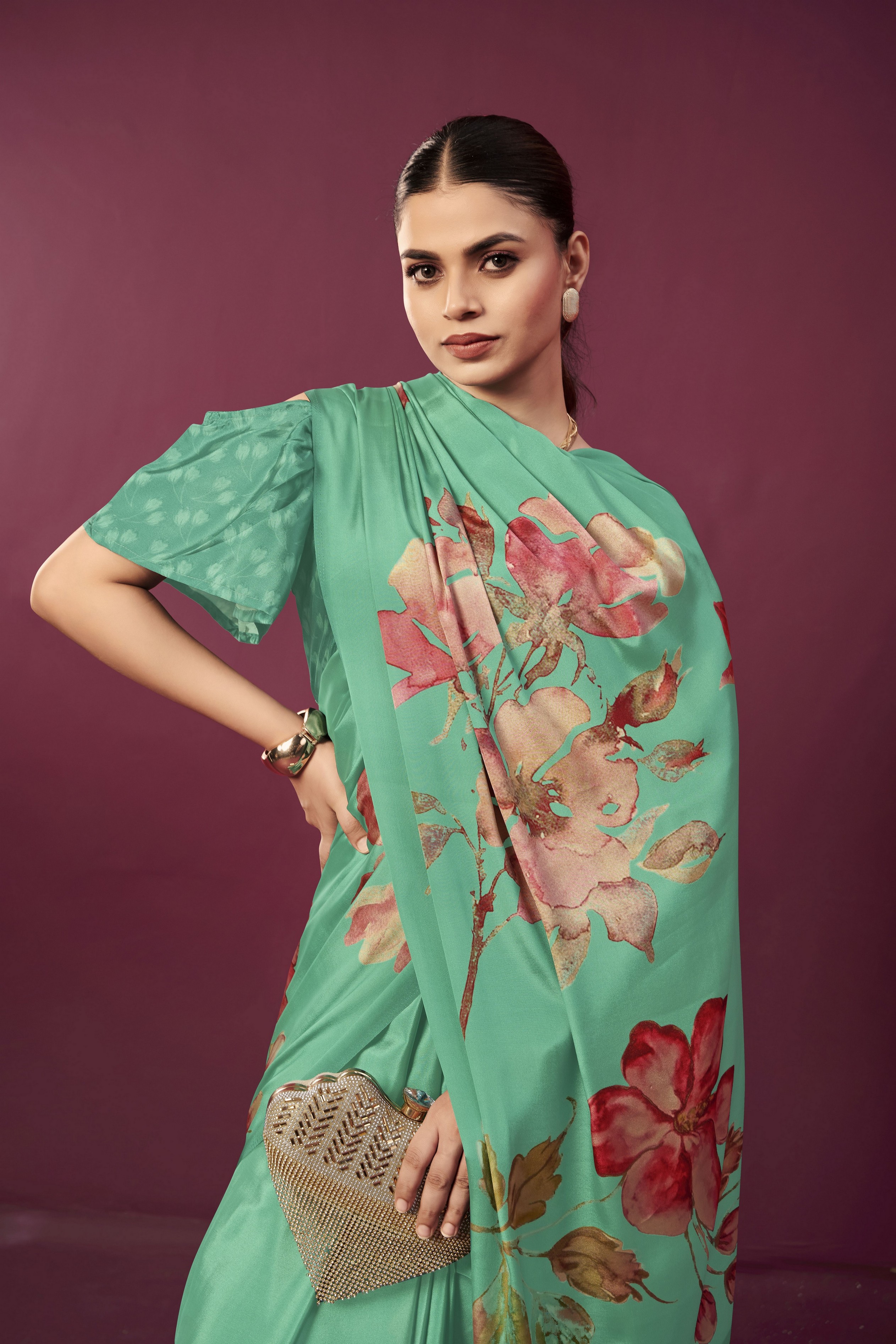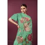 Sea Green Color Malai Crepe Silk Fabric Designer Digital Printed Ceremonial Partywear Saree