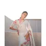 Sidhidata Textile Women's Digital Floral Printed Pure Cotton Linen Saree With Unstitched Blouse Piece (Alia White_White_Free Size)