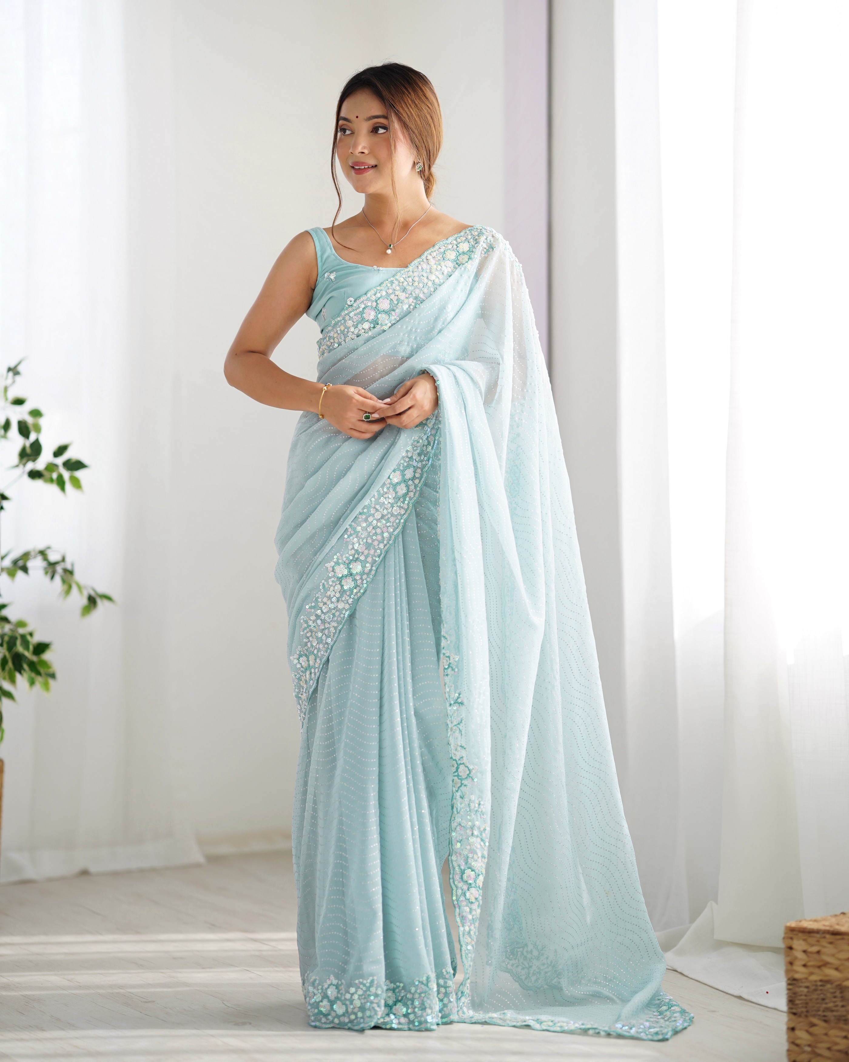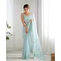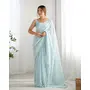 Sky Blue Color Georgette Fabric Beautiful Partywear Embroidered Saree