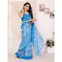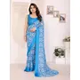Sky Blue Color Moss Satin Patta Designer Flower Printed Ceremonial Saree