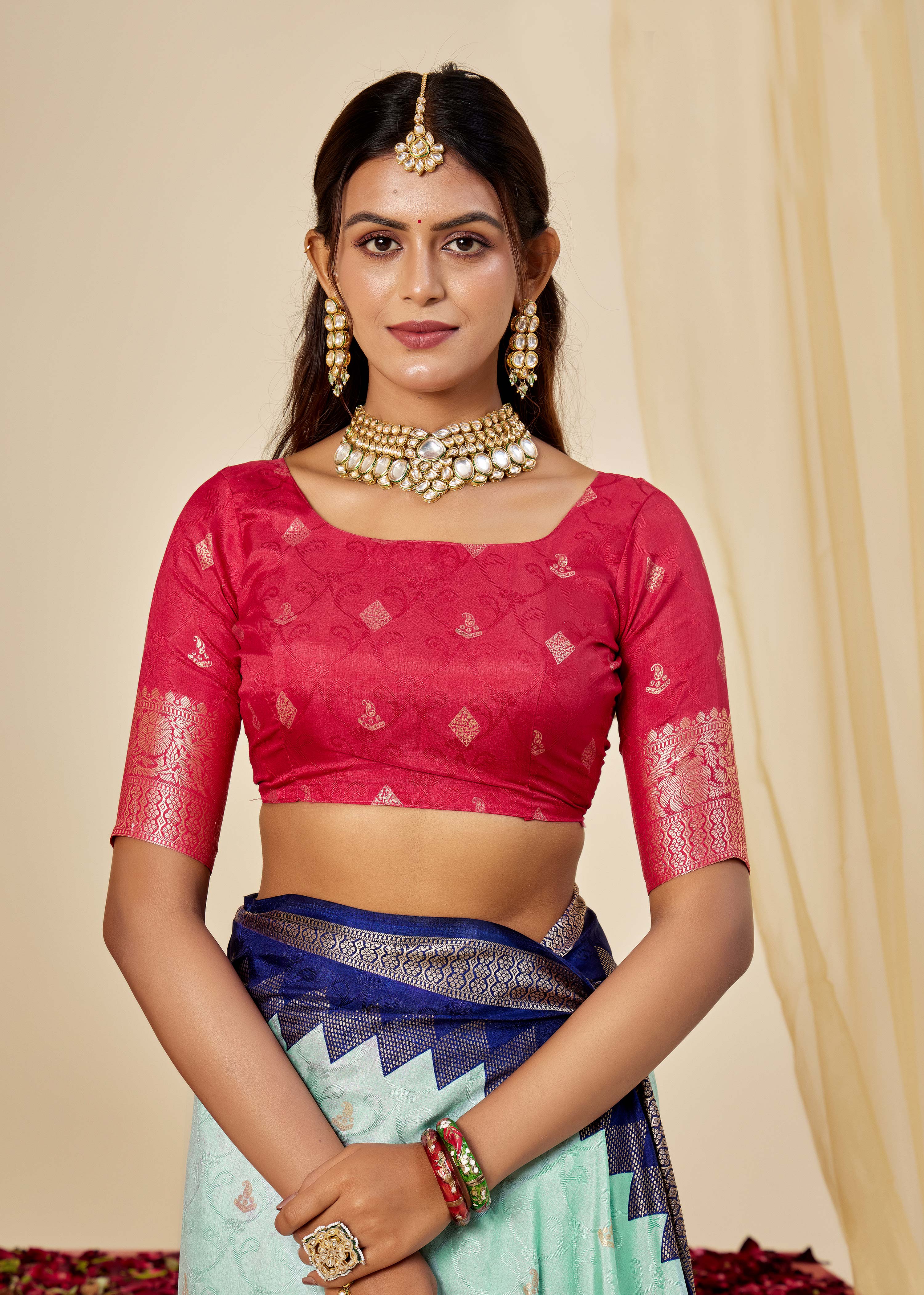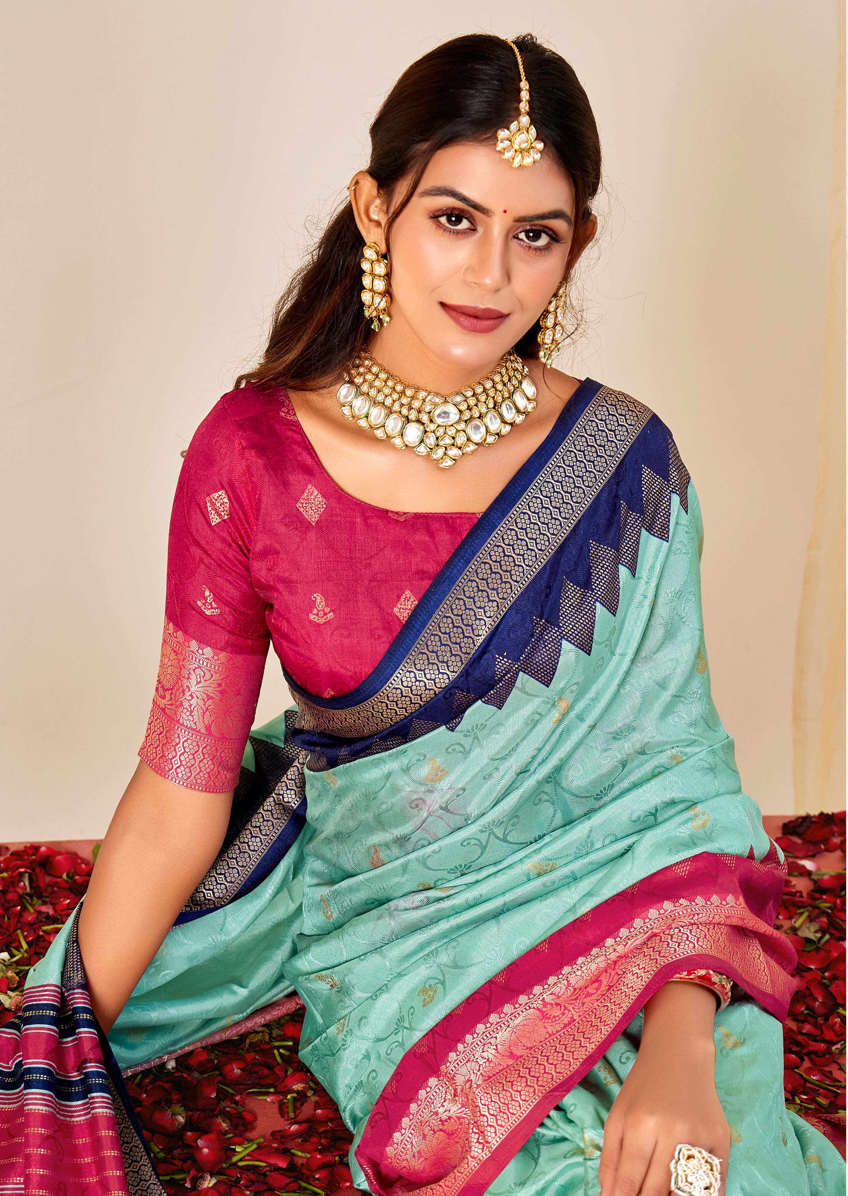 Sky Blue Color Velvet Tussar Silk Fabric Woven Saree With Smart Elegant Print