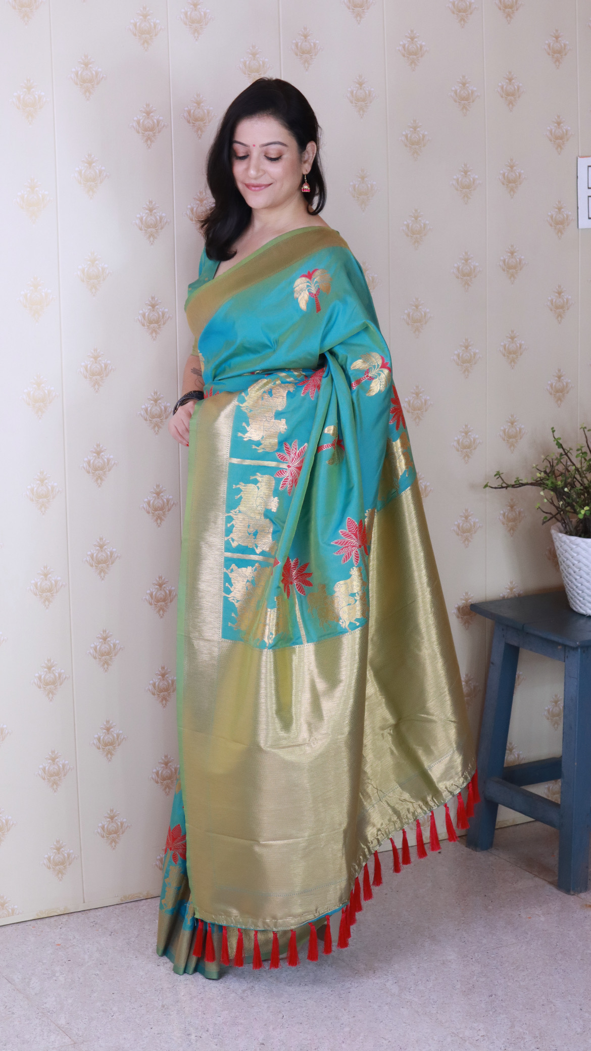 Sky BlueColor Soft Silk Fabric Woven Meenakari Designer Ceremonial Partywear Saree