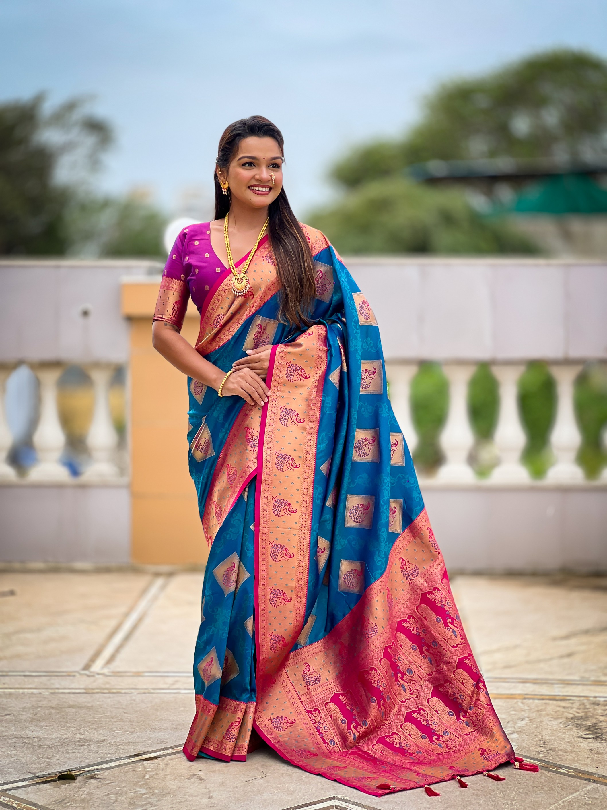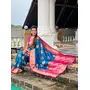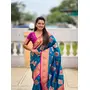 Teal Blue Color Beautiful Woven Designer Meenakari Banarasi Silk Saree