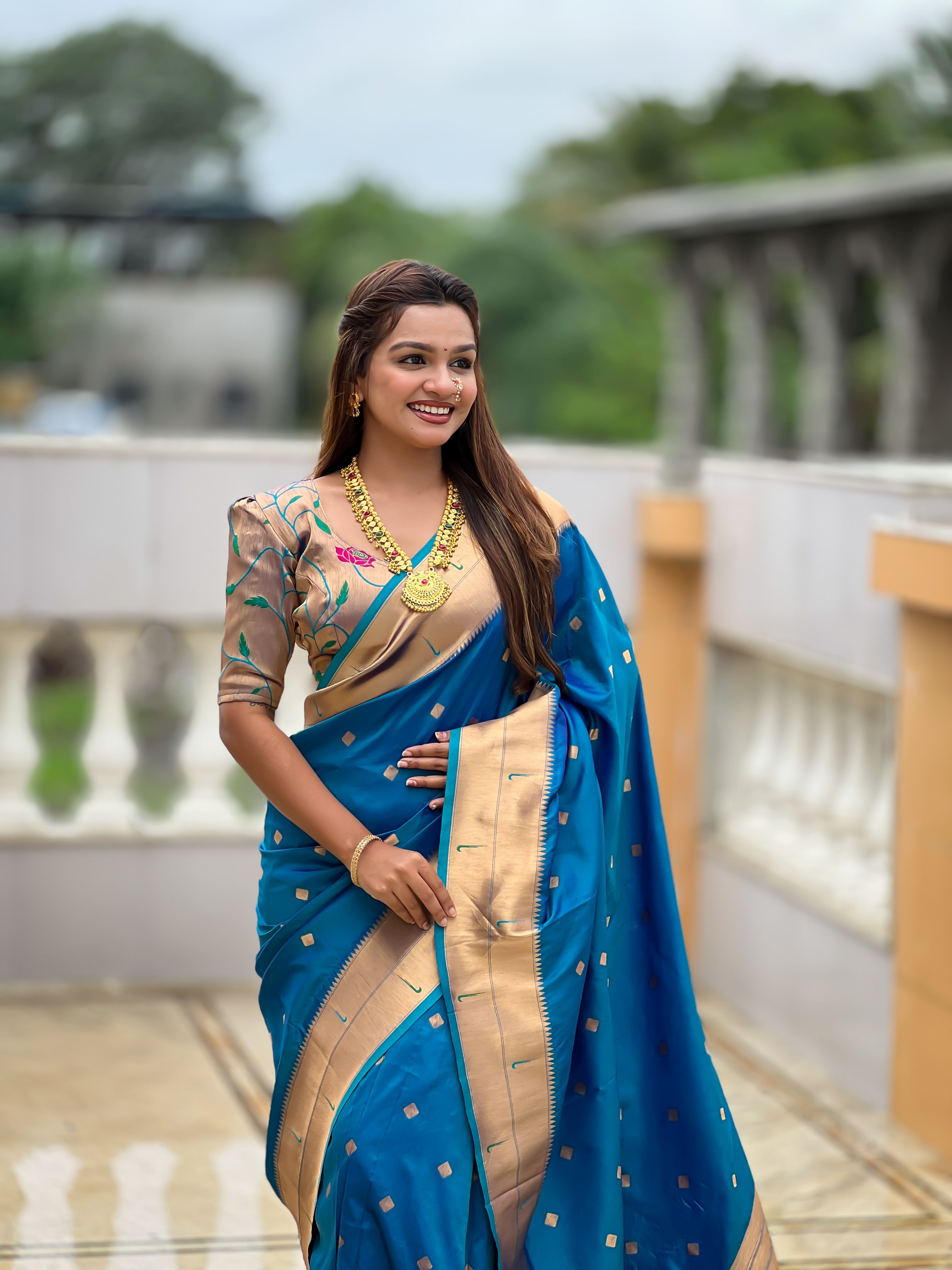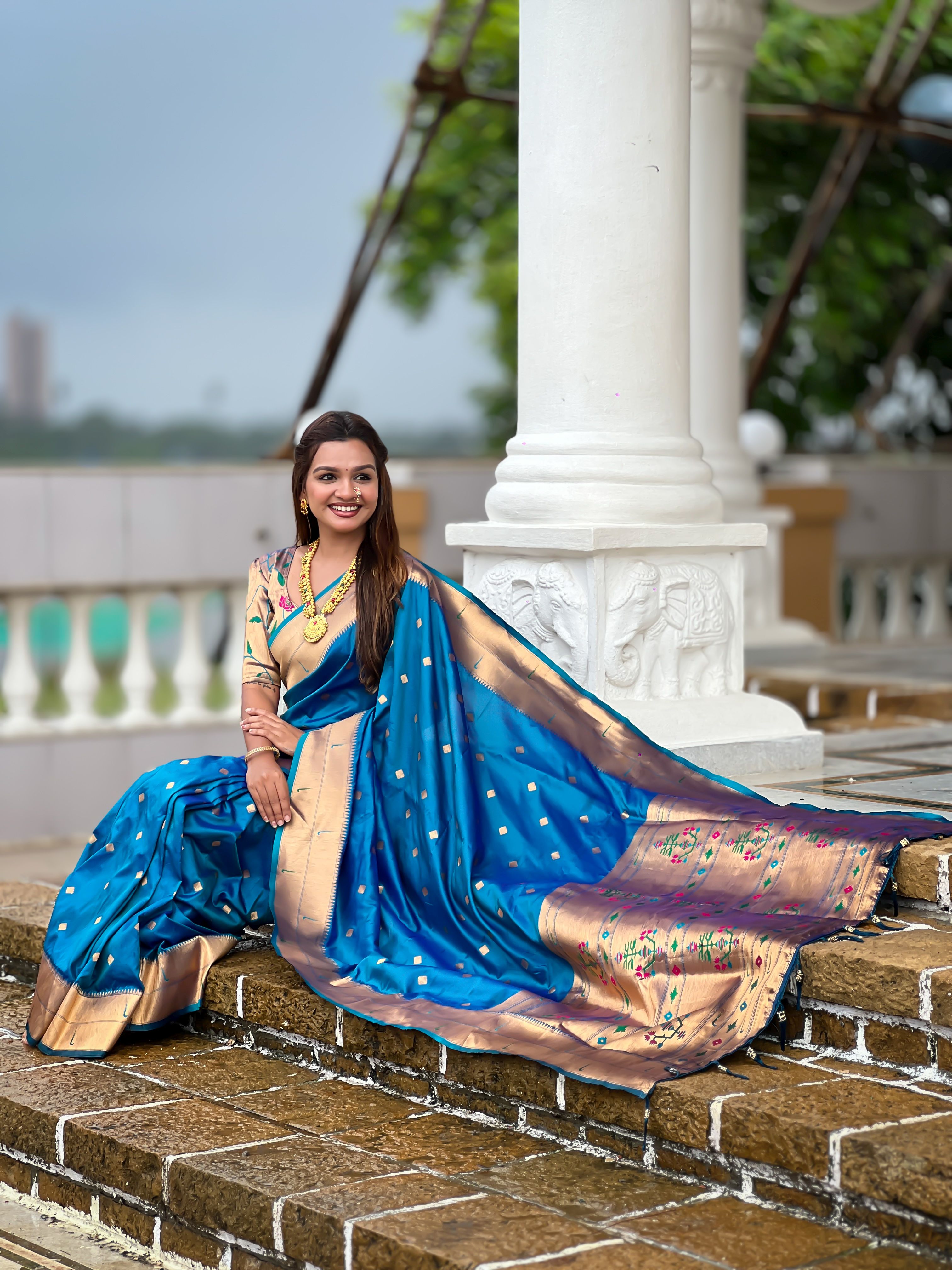 Teal Blue Color Paithani Silk Woven Jacquard Jari Designer Ethnic Saree