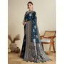 Teal Blue Color Satin Silk Wevon Jari Designer Trendy Festive Saree