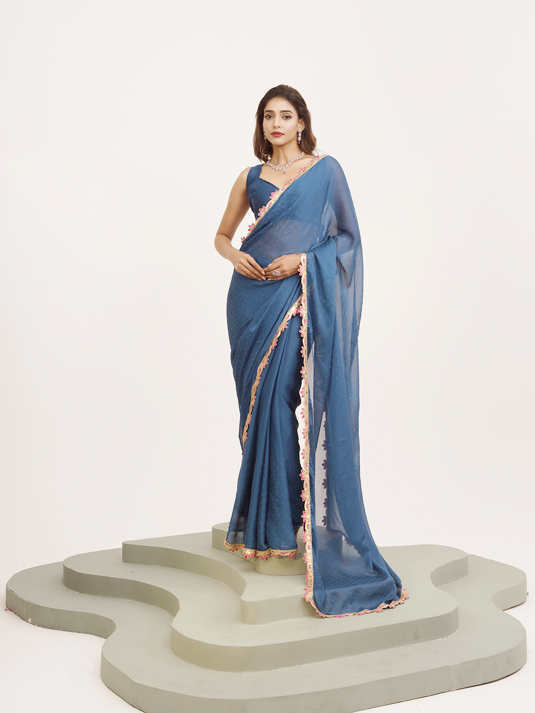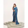 Teal Color Embellished Sequinned Chiffon Saree For Beautiful Partywear Saree