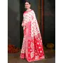 White & Red Color Linen Cotton Wevon Jacquard Designer Saree