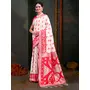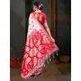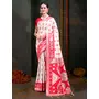 White & Red Color Linen Cotton Wevon Jacquard Designer Saree