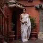 White Color Bollywood Style Smart Embroidered Ceremonial Saree